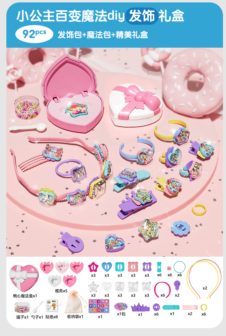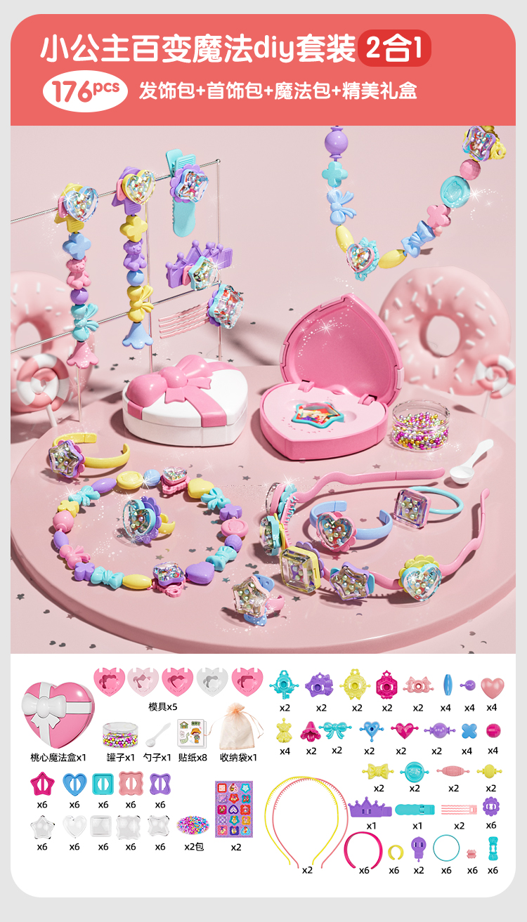 【二合一】小公主的百变魔法diy首饰发饰二合一礼盒176pcs