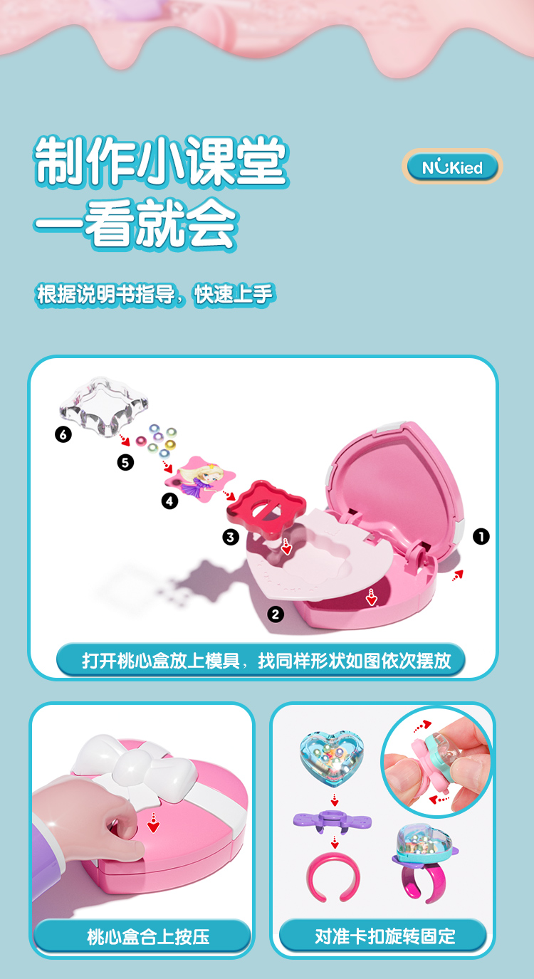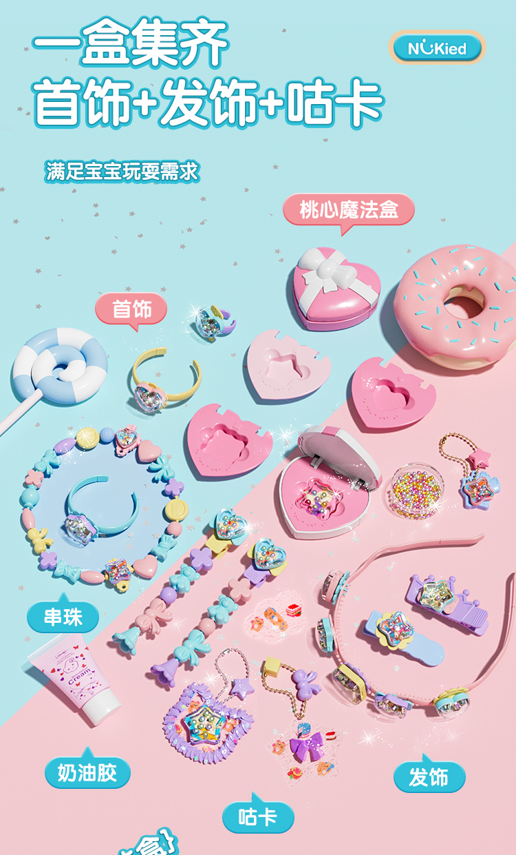 商品名称:纽奇 儿童爆款百变贴纸机咕卡魔法书手工创意DIY饰品女孩礼物 桃心魔法盒 2合1首饰咕卡