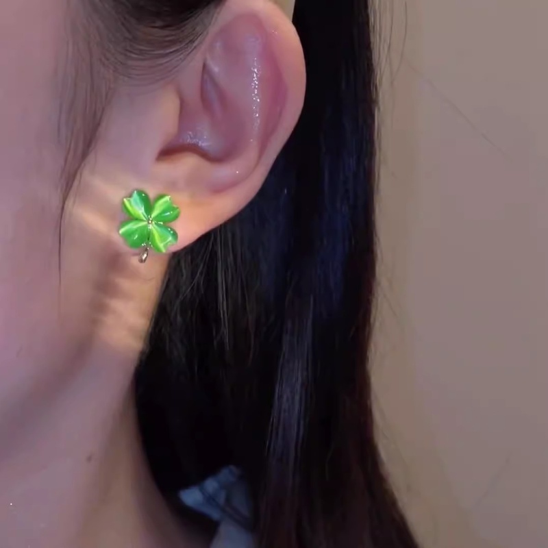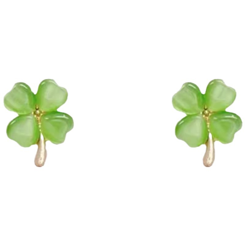 彤彤兔 S925银针猫眼石四叶草耳环韩国气质网红耳钉潮耳饰