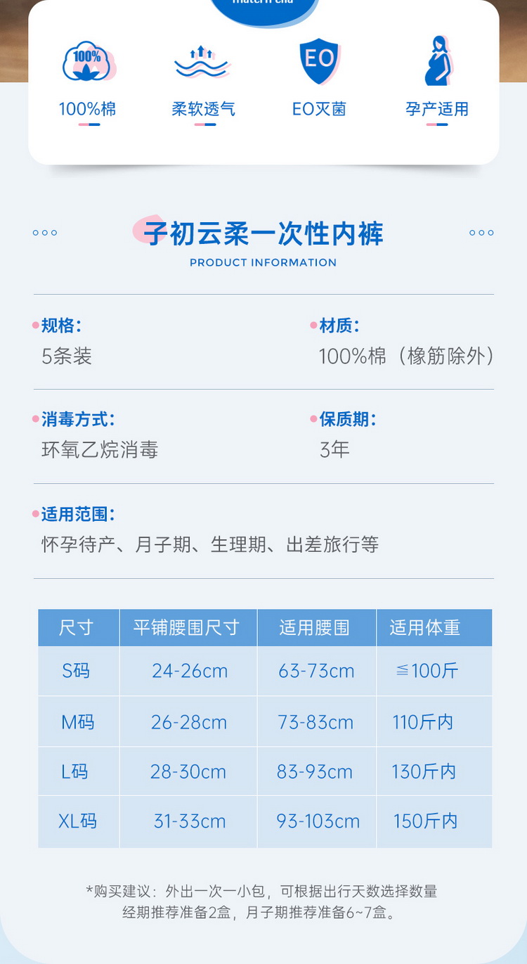商品名称:【品牌直供】子初 一次性内裤女5条/袋 孕妇产妇月子纯棉透气成人大码旅行旅游