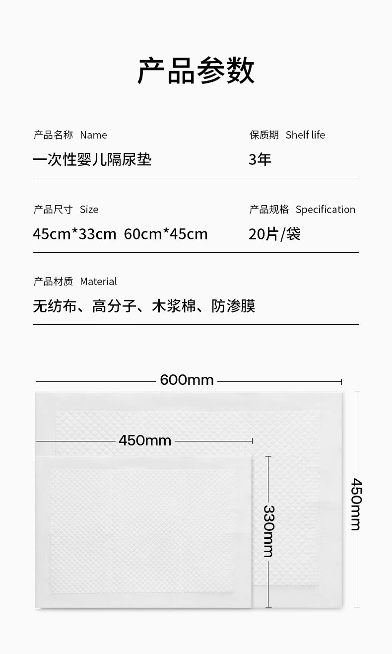 商品名称:EMXEE嫚熙-婴儿隔尿垫20片/包(45×60)