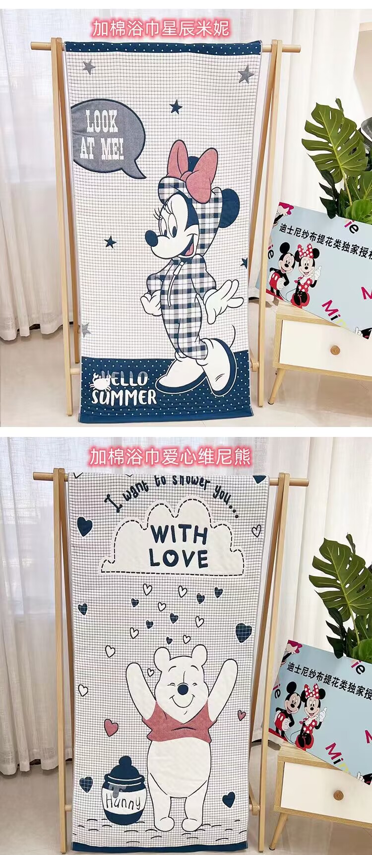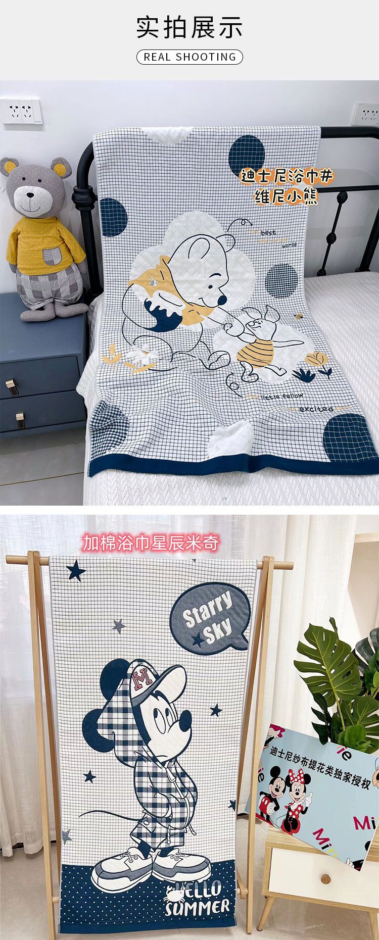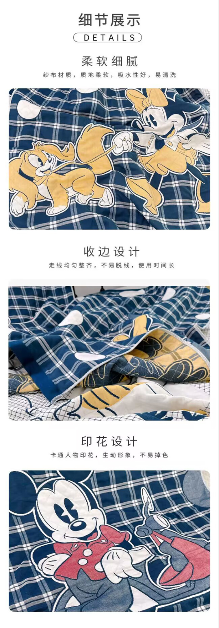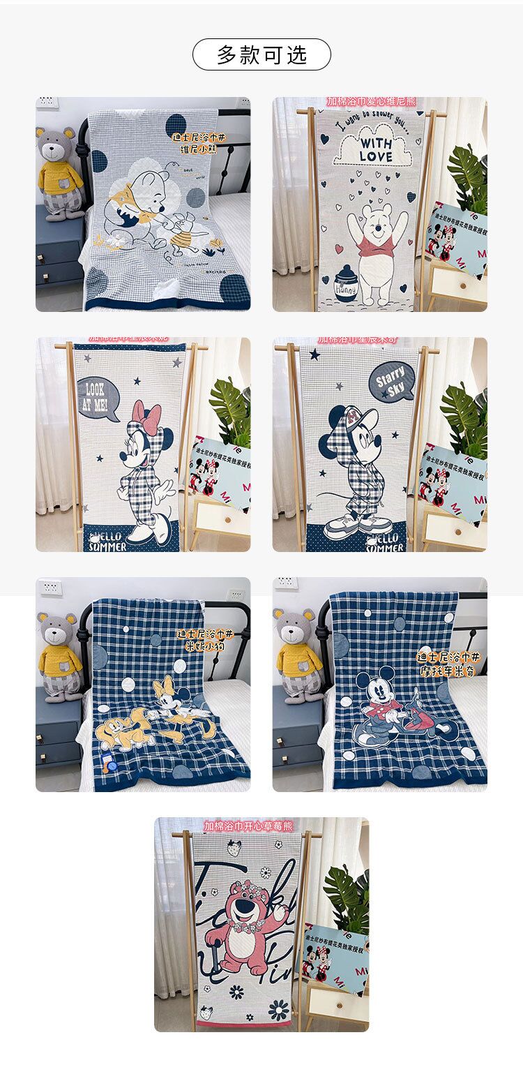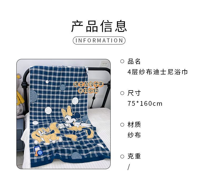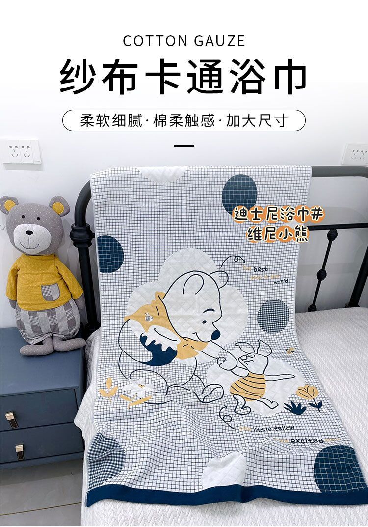 商品名称:迪士尼纱布儿童浴巾家用吸水加大加厚纱布浴巾午睡盖毯新生儿包被被子规格80*160cm