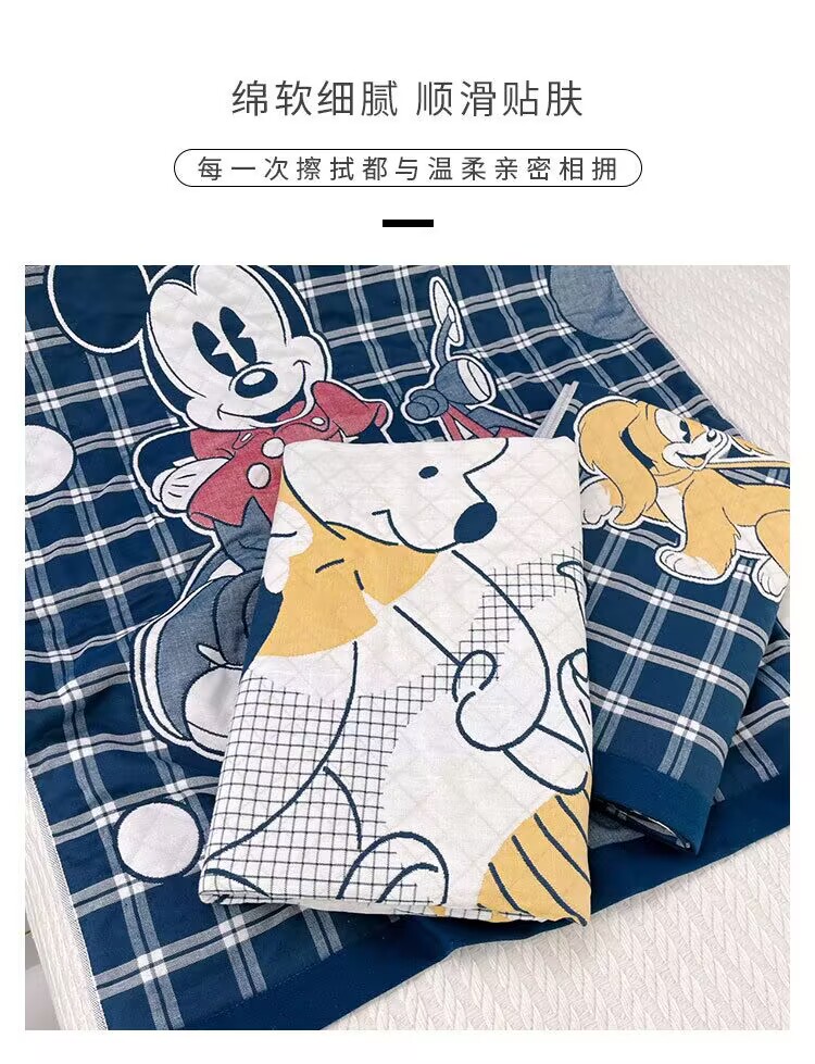 迪士尼纱布儿童浴巾家用吸水加大加厚纱布浴巾午睡盖毯新生儿包被被子规格80*160cm