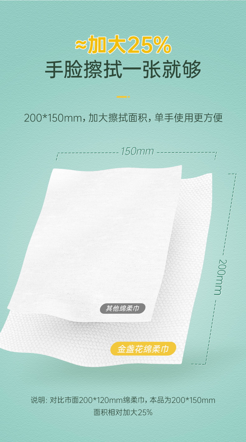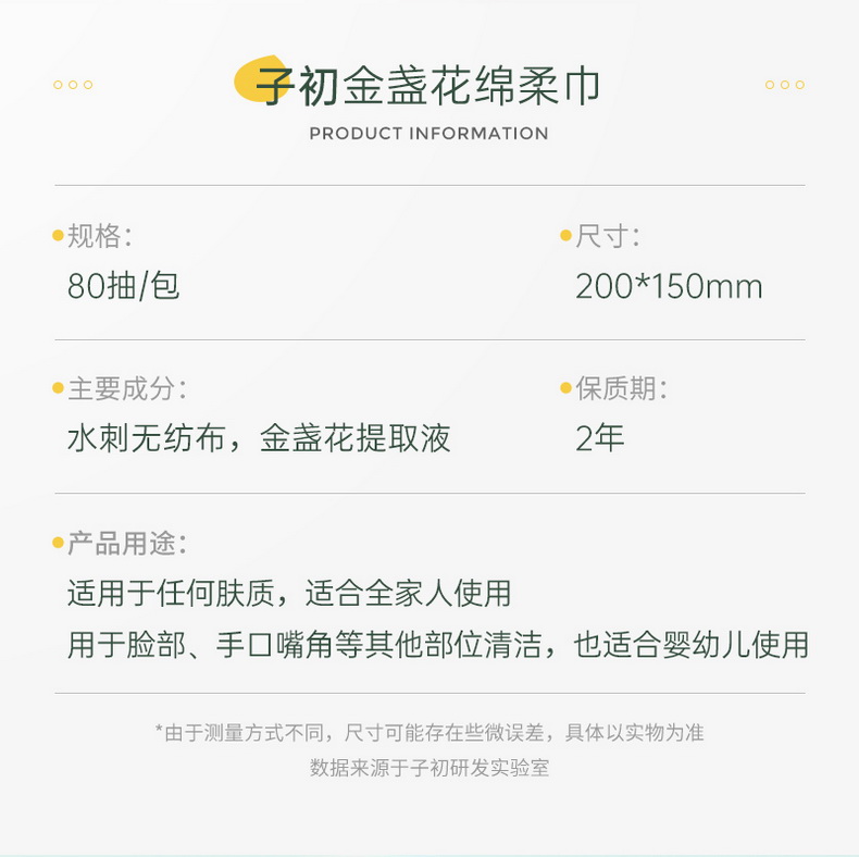 商品名称:【品牌直供】子初金盏花棉柔巾干湿两用洗脸巾婴儿一次性加厚洁面巾 200*150mm 80抽/包