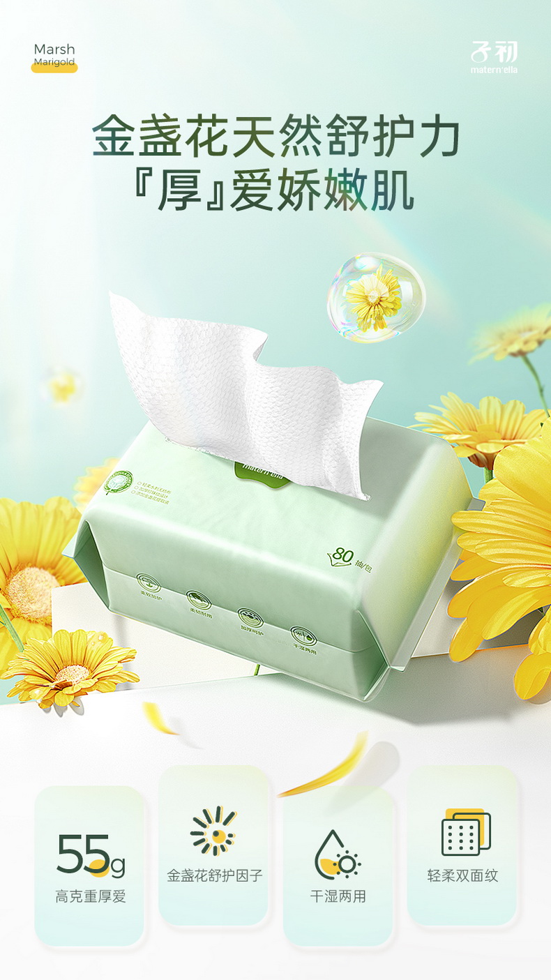 【品牌直供】子初金盏花棉柔巾干湿两用洗脸巾婴儿一次性加厚洁面巾 200*150mm 80抽/包