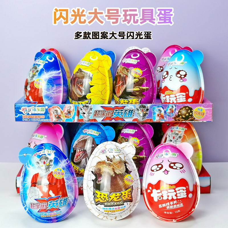 糖果总动员佰乐园卡玩蛋恐龙蛋闪光大号玩具蛋多款图案闪光蛋超市供货12g/个