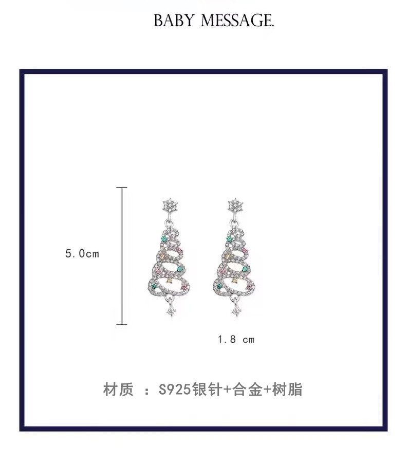 商品名称:彤彤兔 S925银针欧美圣诞耳环彩色流苏圣诞树耳钉闪钻镂空长款耳饰品