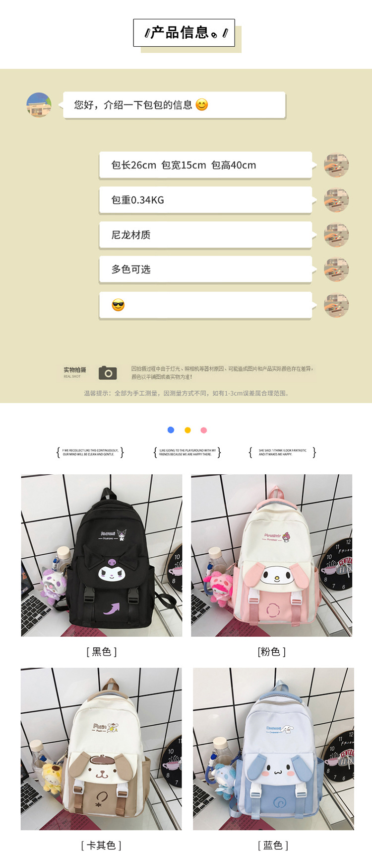 商品名称:彤彤兔 日系简约书包女ins风大容量大学生双肩包校园可爱小学生背包休闲