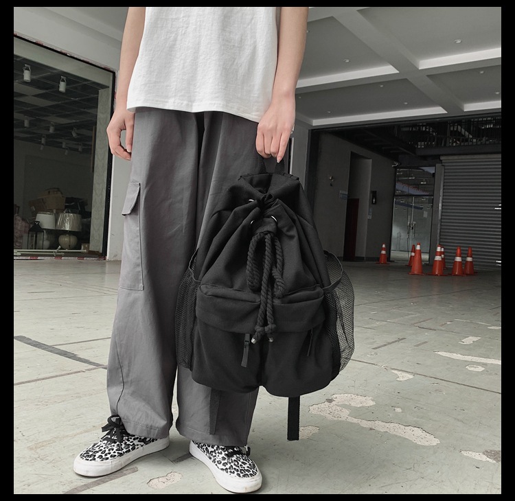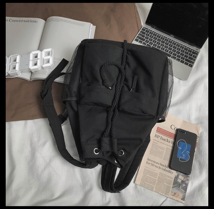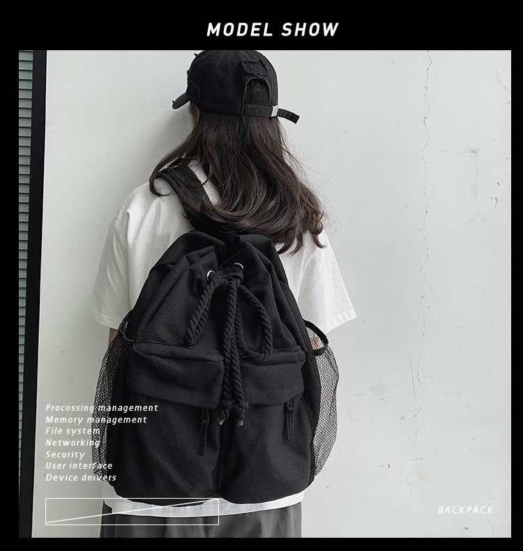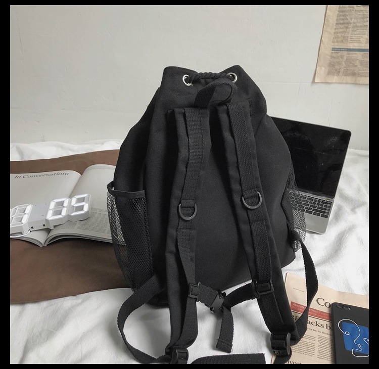 彤彤兔 书包女韩版大学生复古抽绳chic帆布休闲大容量双肩包ins风