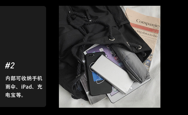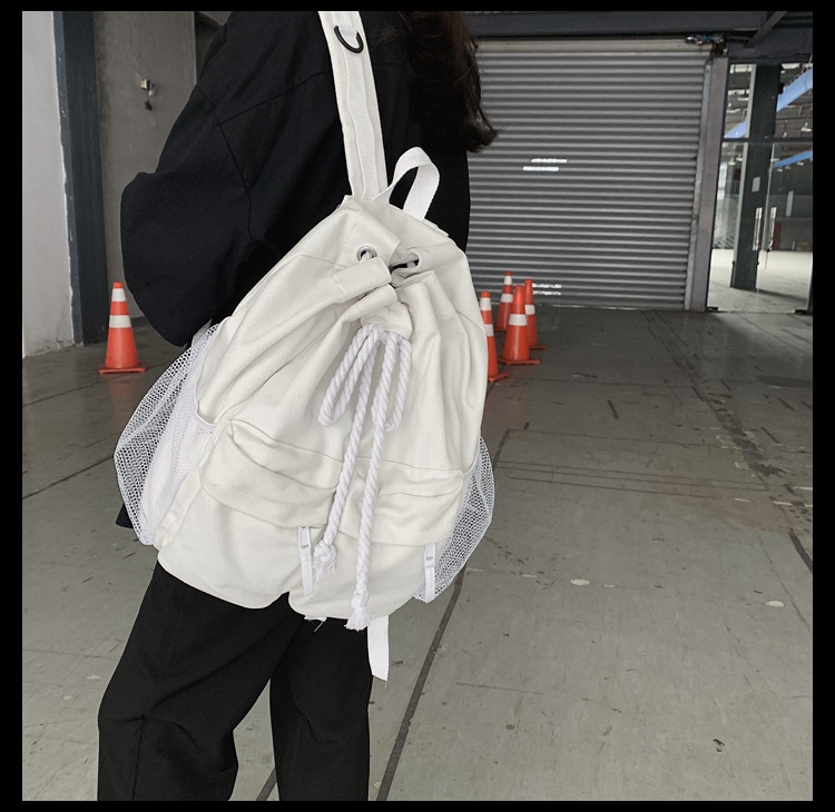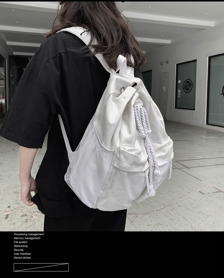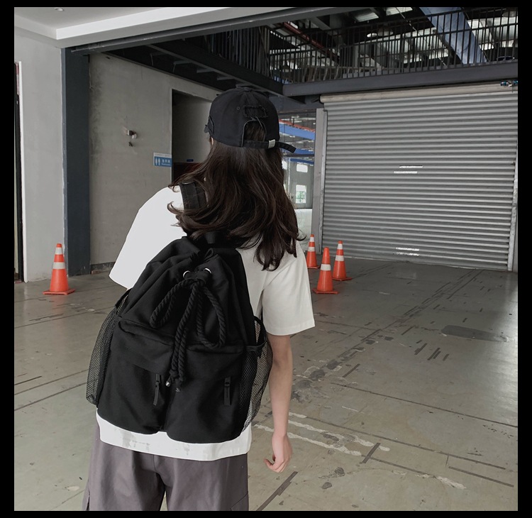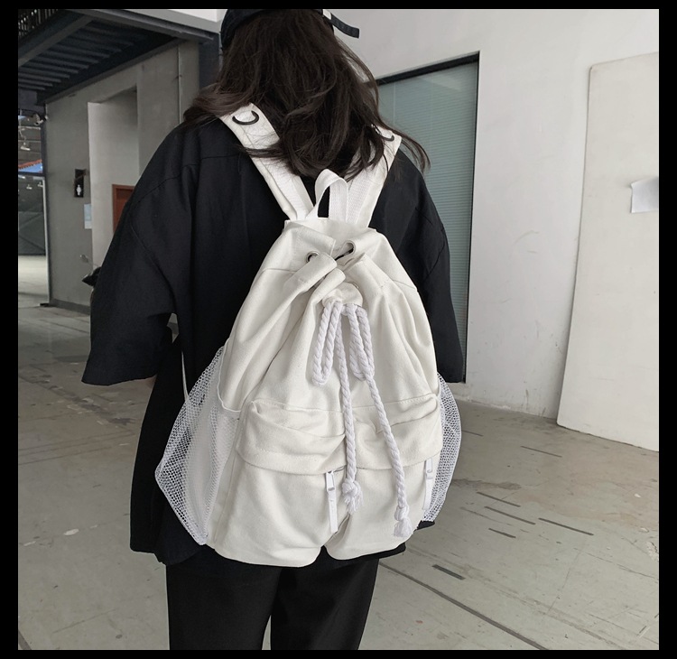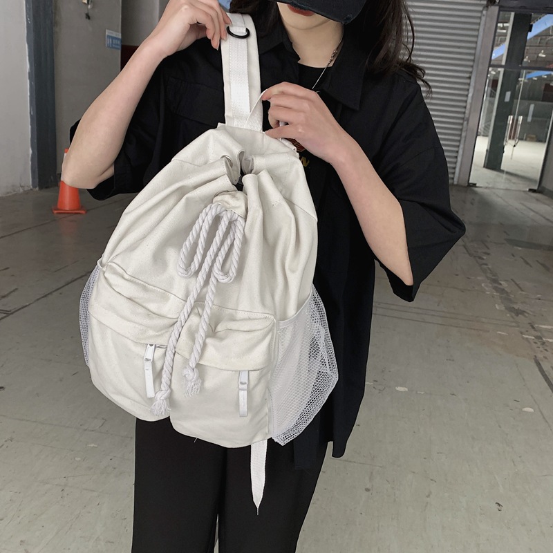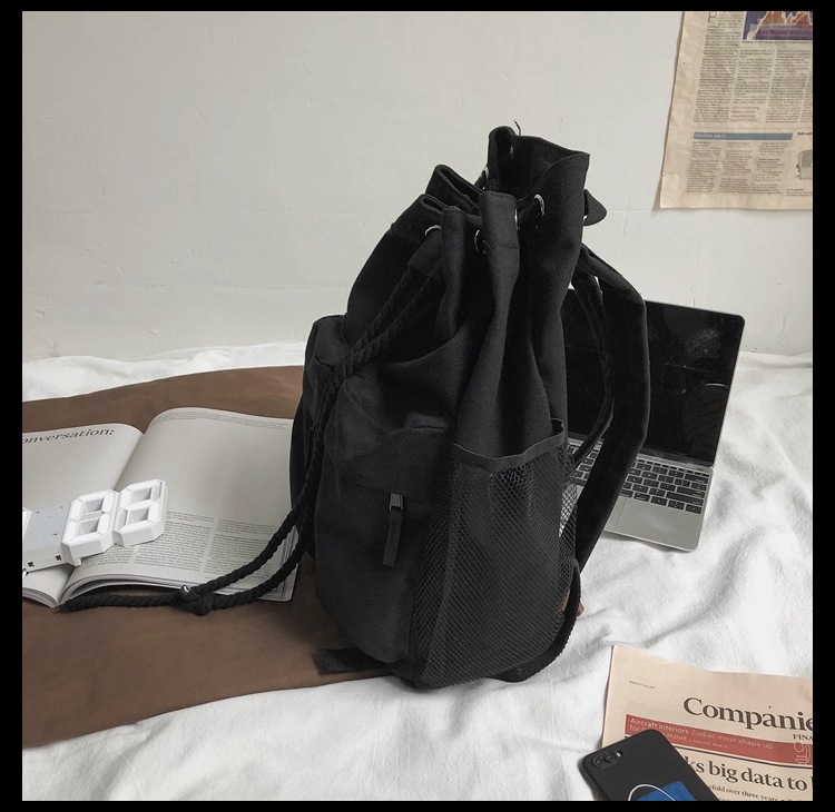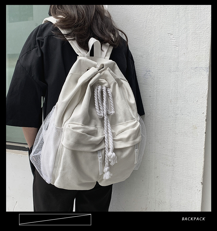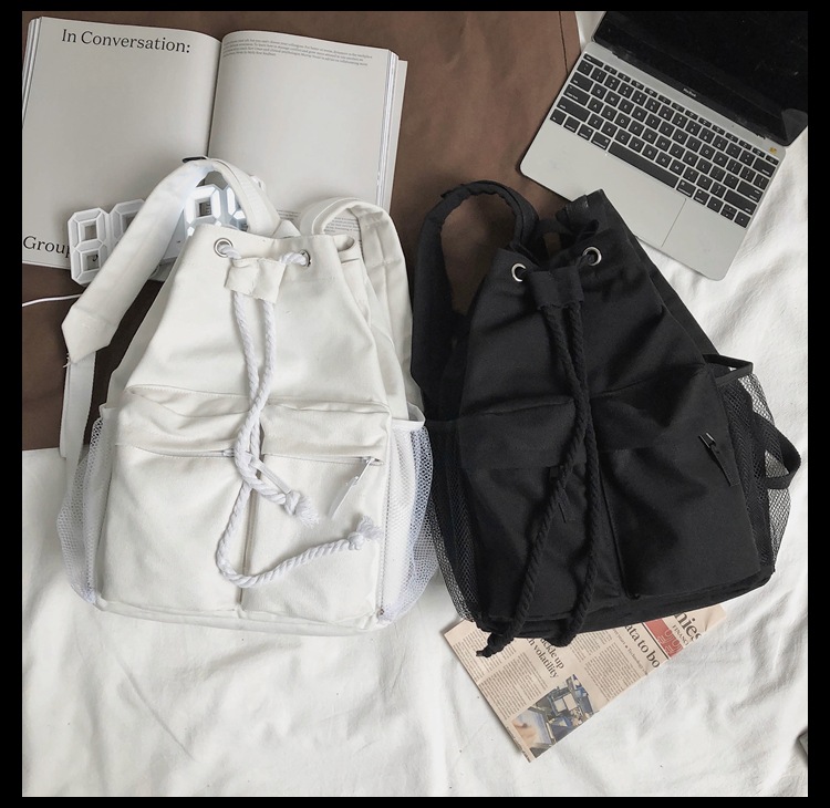 商品名称:彤彤兔 书包女韩版大学生复古抽绳chic帆布休闲大容量双肩包ins风