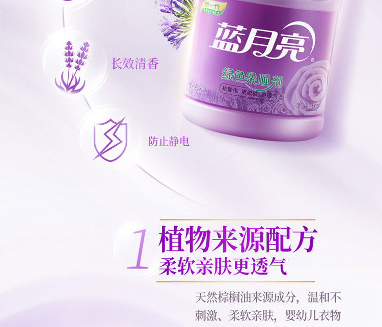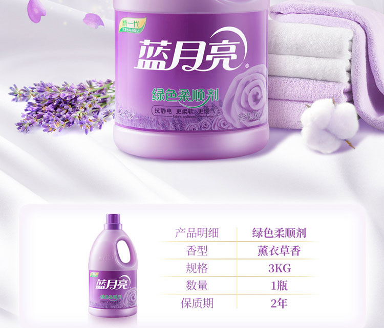 商品名称:蓝月亮 绿色柔顺剂(薰衣草)3kg 防静电环保长效清香成人儿童衣物柔顺剂