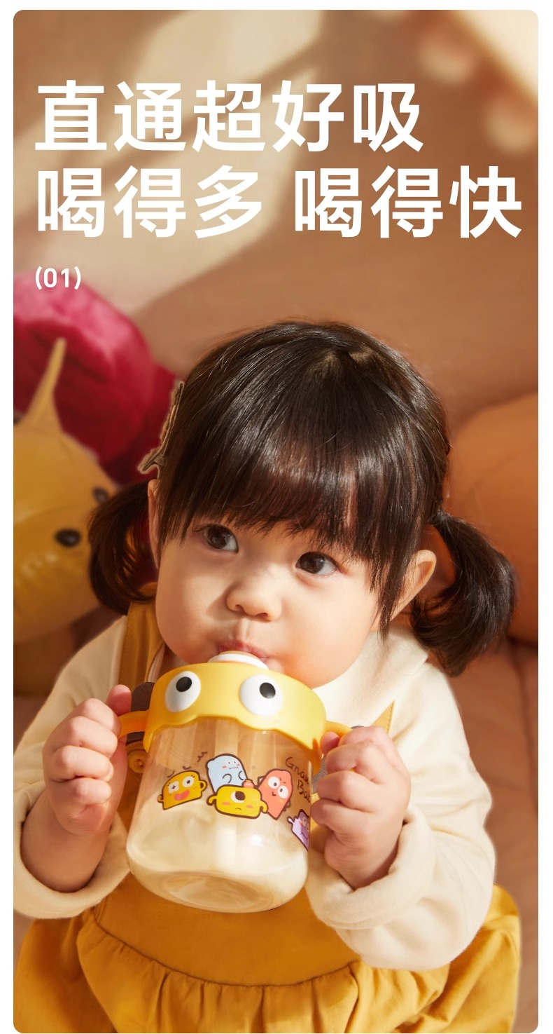 VS【2025新款】皇宠儿童牛奶杯PPSU带刻度吸管水杯宝宝直饮喝水杯喝奶杯240/330ml
