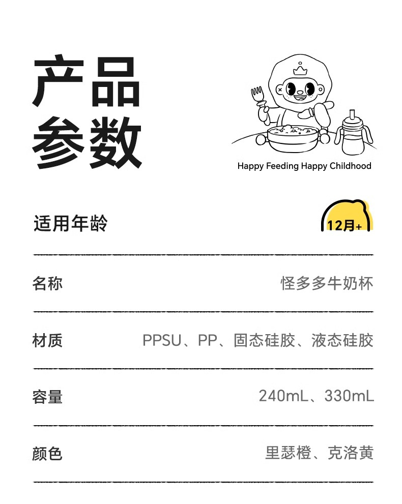 商品名称:VS【2025新款】皇宠儿童牛奶杯PPSU带刻度吸管水杯宝宝直饮喝水杯喝奶杯240/330ml