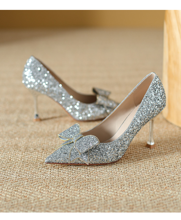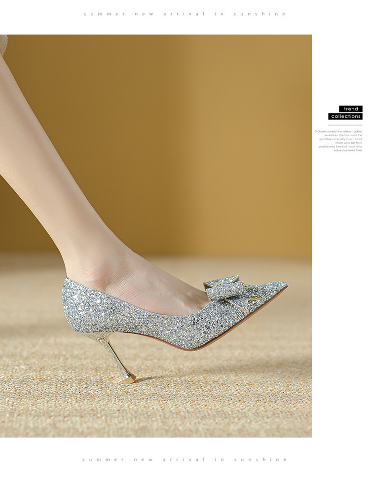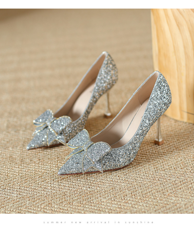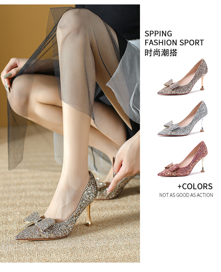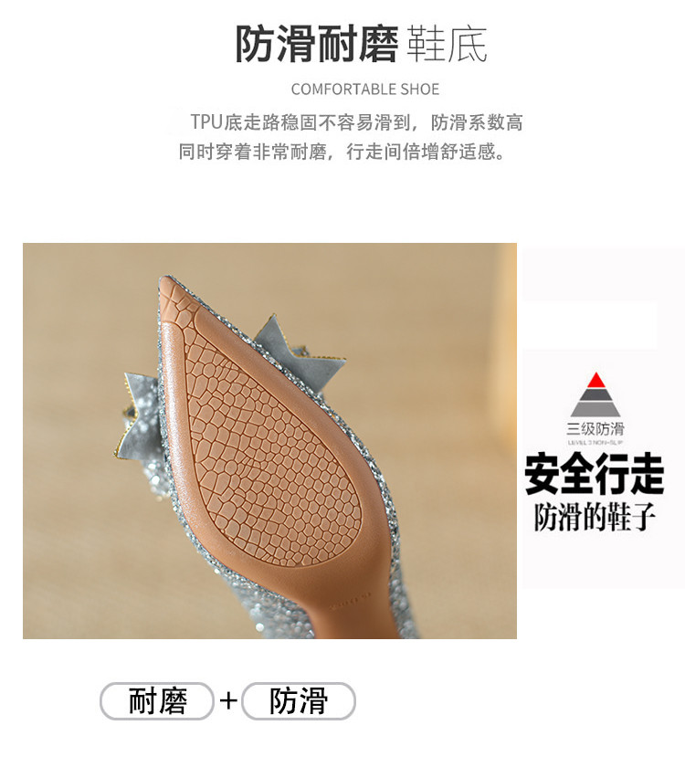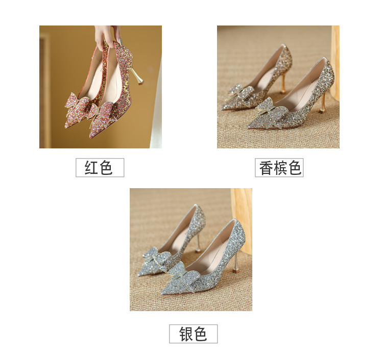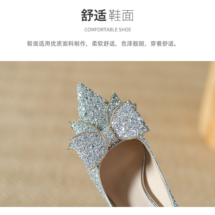 商品名称:【热卖爆款】亮片水钻蝴蝶结高跟鞋女2025新款轻奢婚鞋新娘鞋 001239
