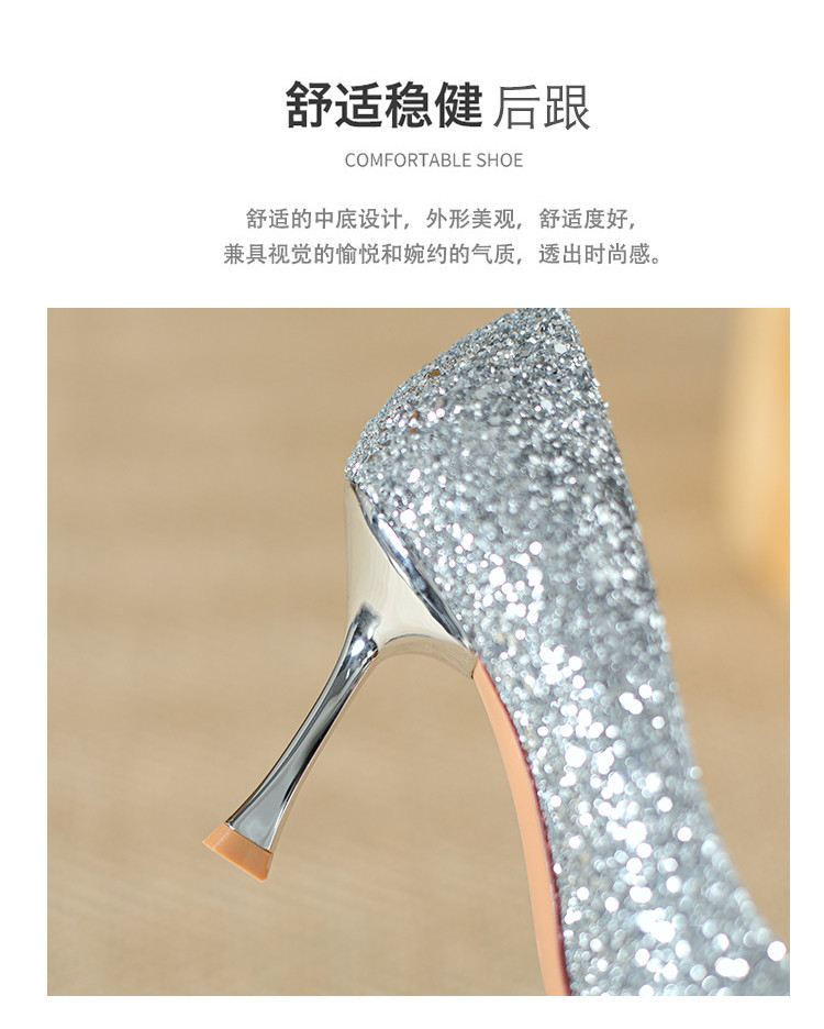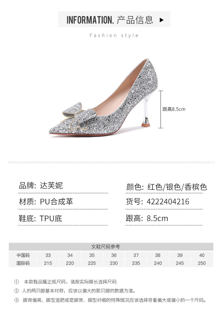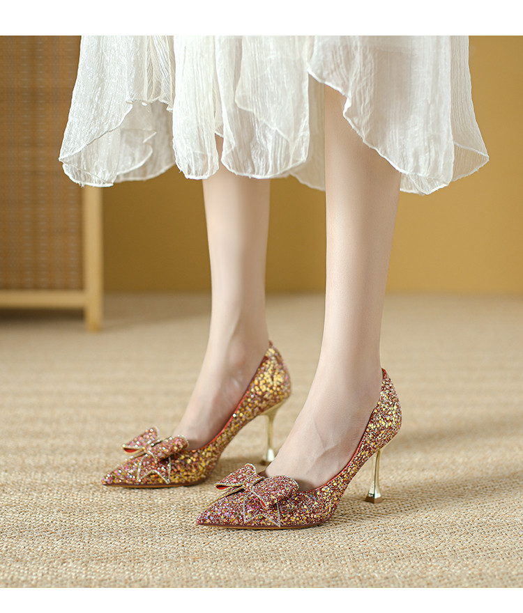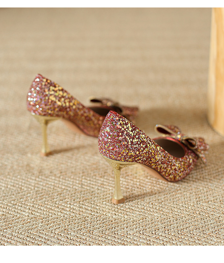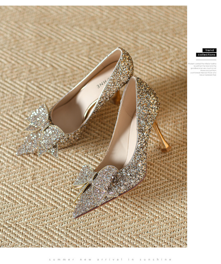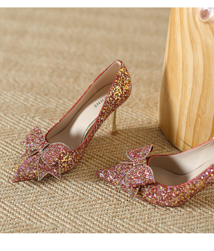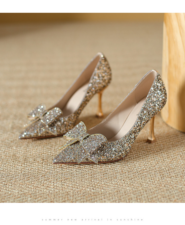 商品名称:【热卖爆款】亮片水钻蝴蝶结高跟鞋女2025新款轻奢婚鞋新娘鞋 001239