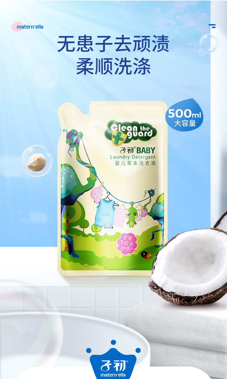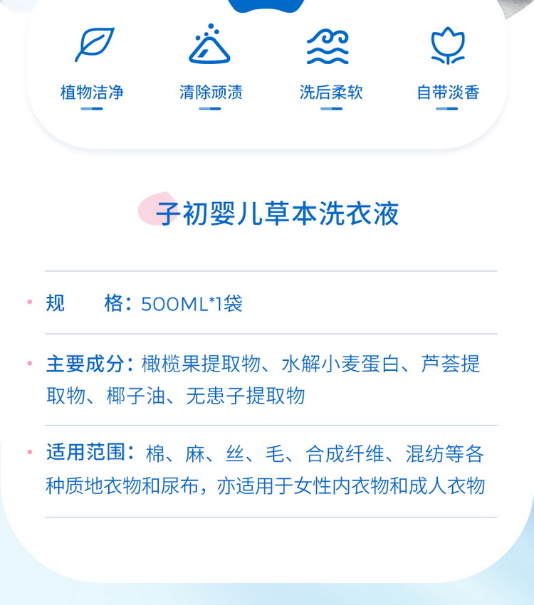 商品名称:【品牌直供】子初 草本洗衣液单袋500ML 婴幼儿新生儿宝宝专用去污渍