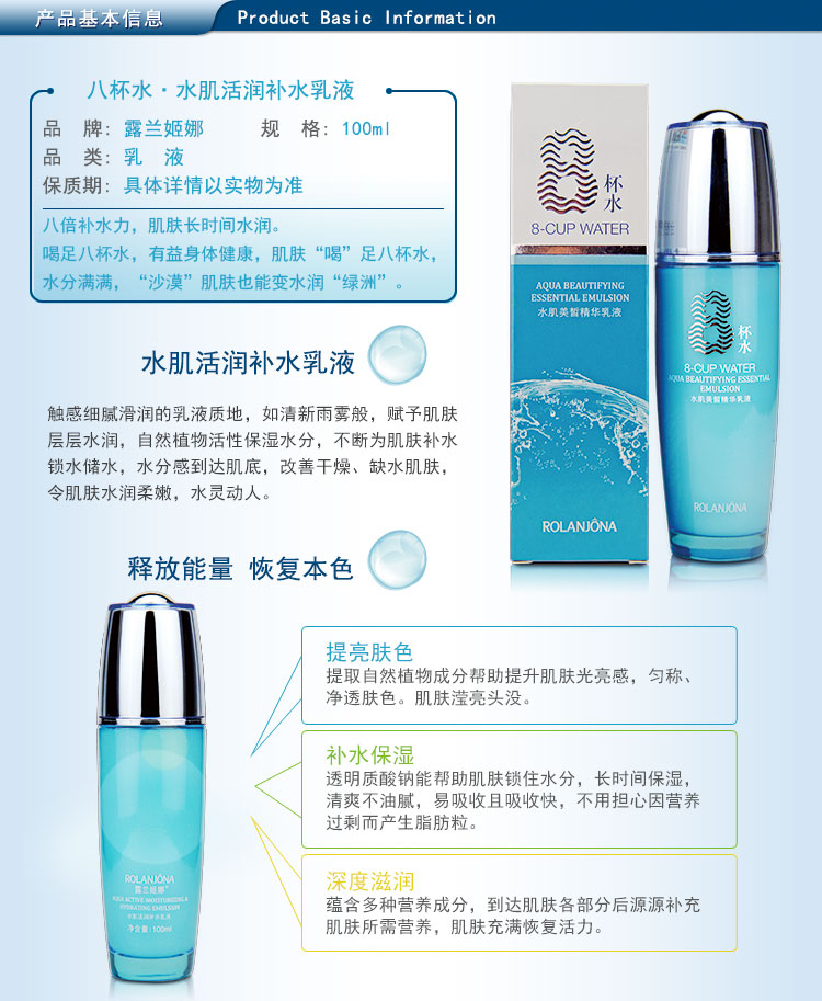 商品名称:露兰姬娜 八杯水水肌活润补水乳液 补水保湿 深度滋养 100ml