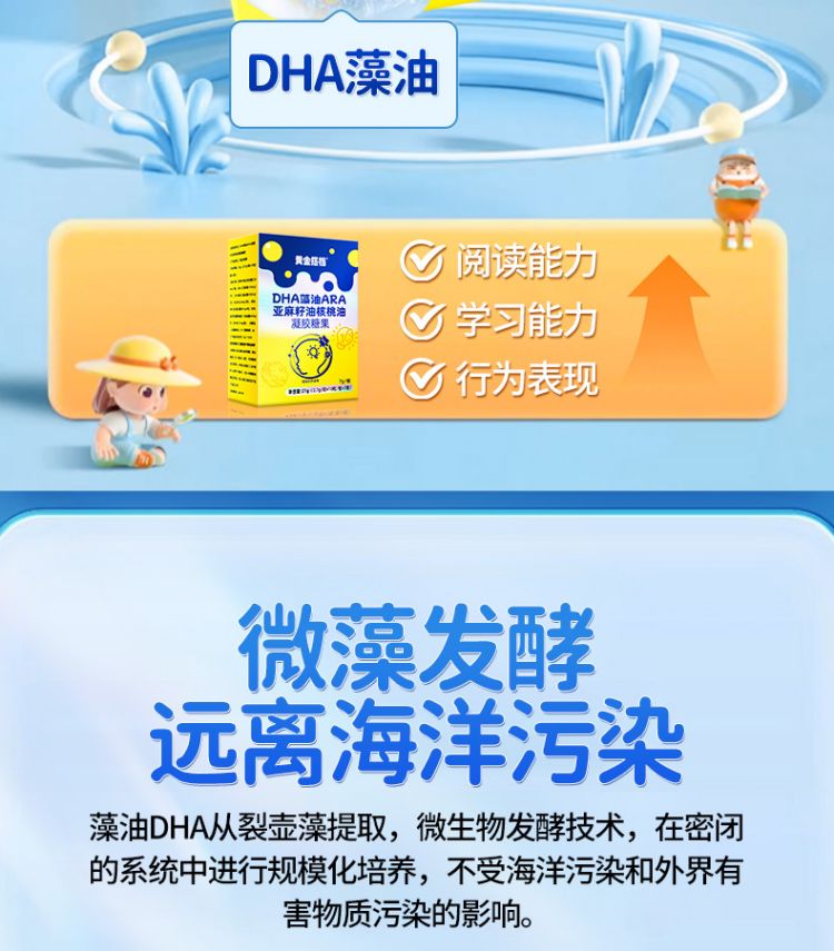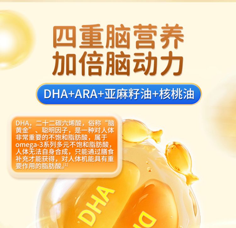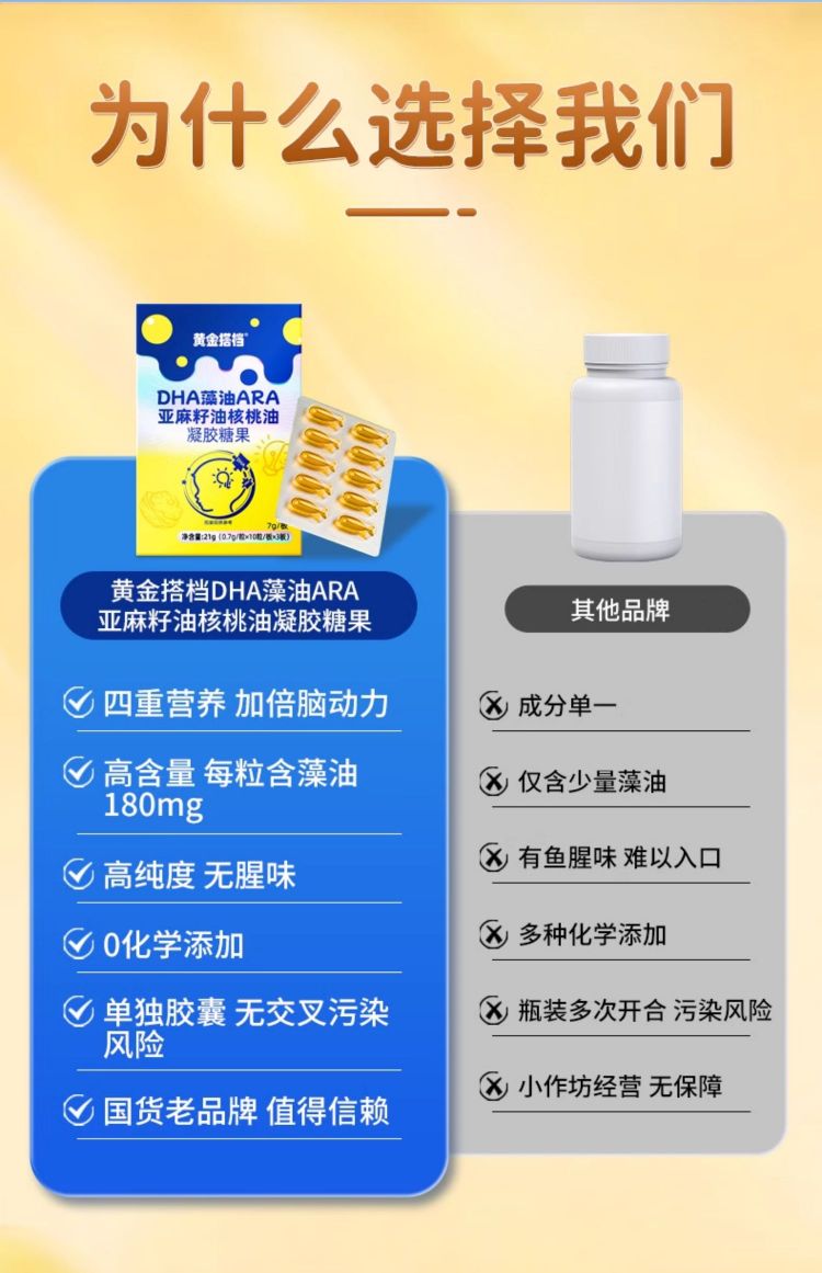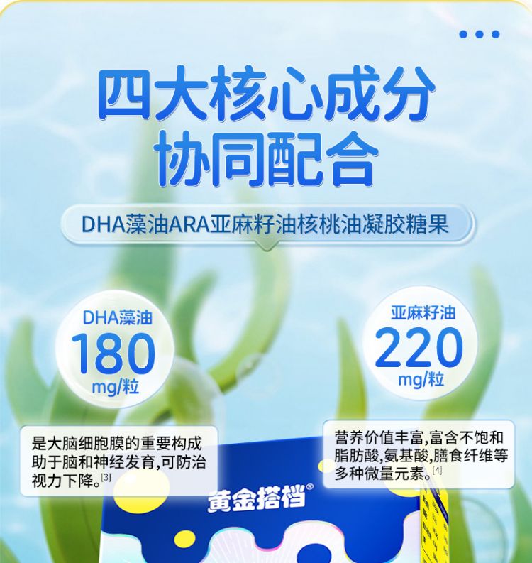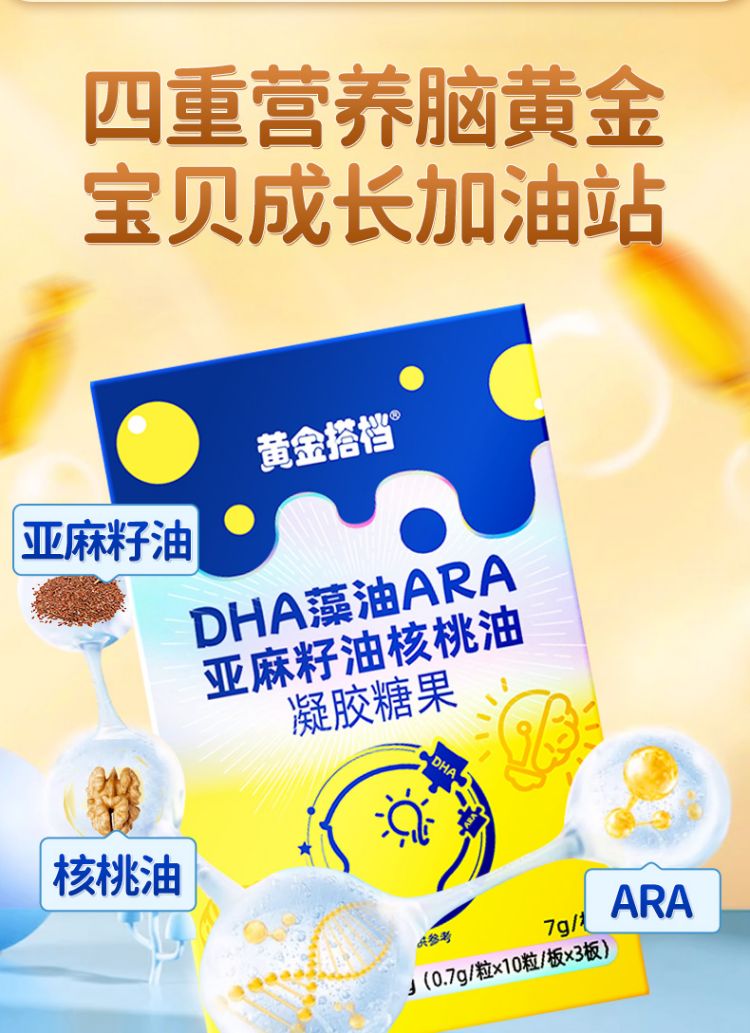 黄金搭档DHA藻油ARA亚麻籽油学生鱼肝油儿童青少年孕妇记忆力核桃油软糖