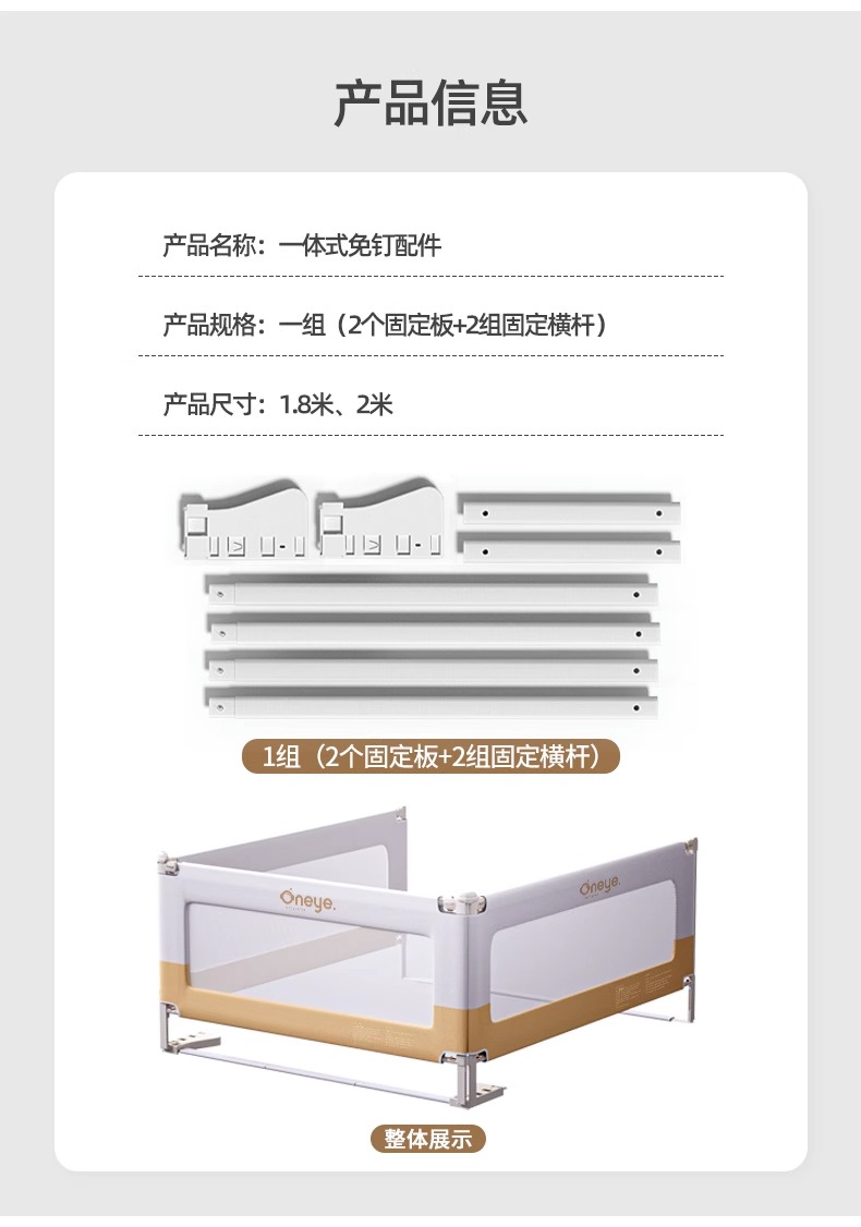 商品名称:【品牌直供】(配件)三面一体式免钉床围栏 免打孔护栏 适合两面以上安装