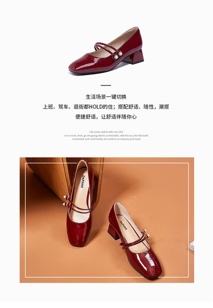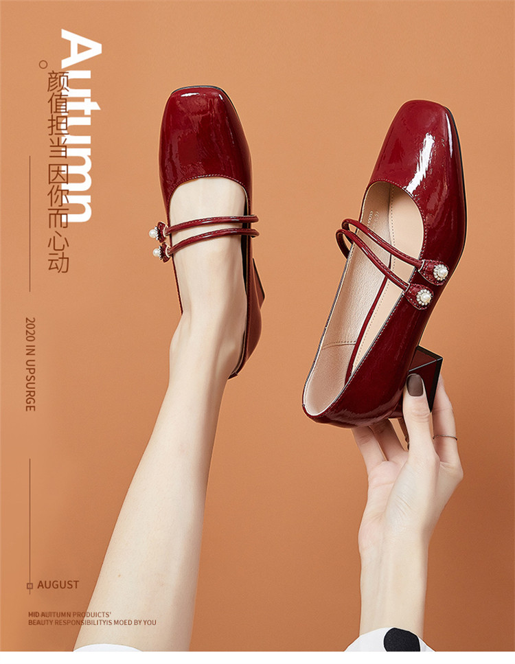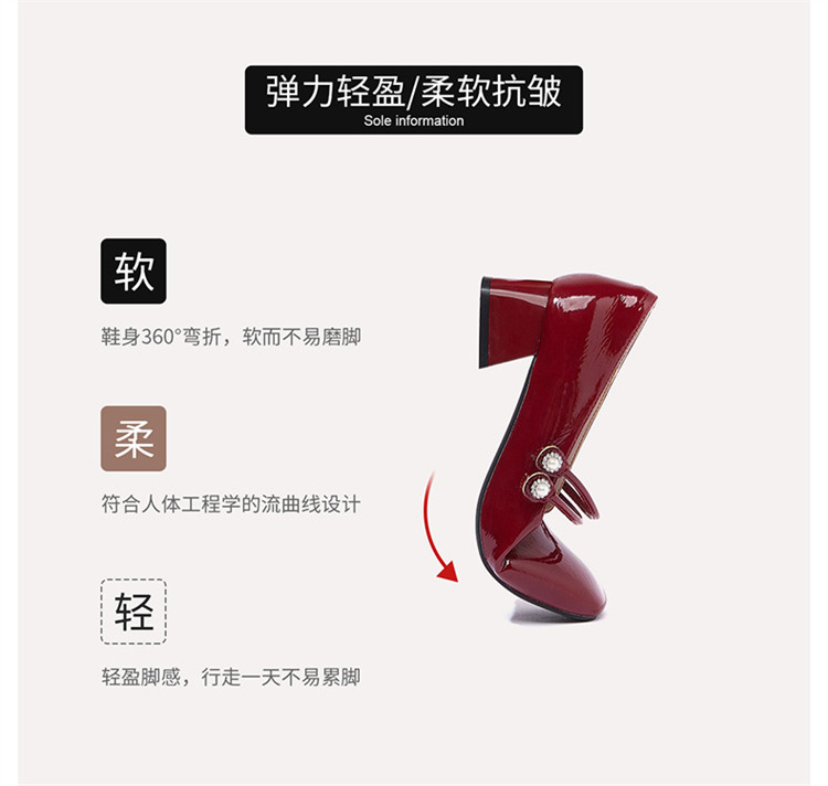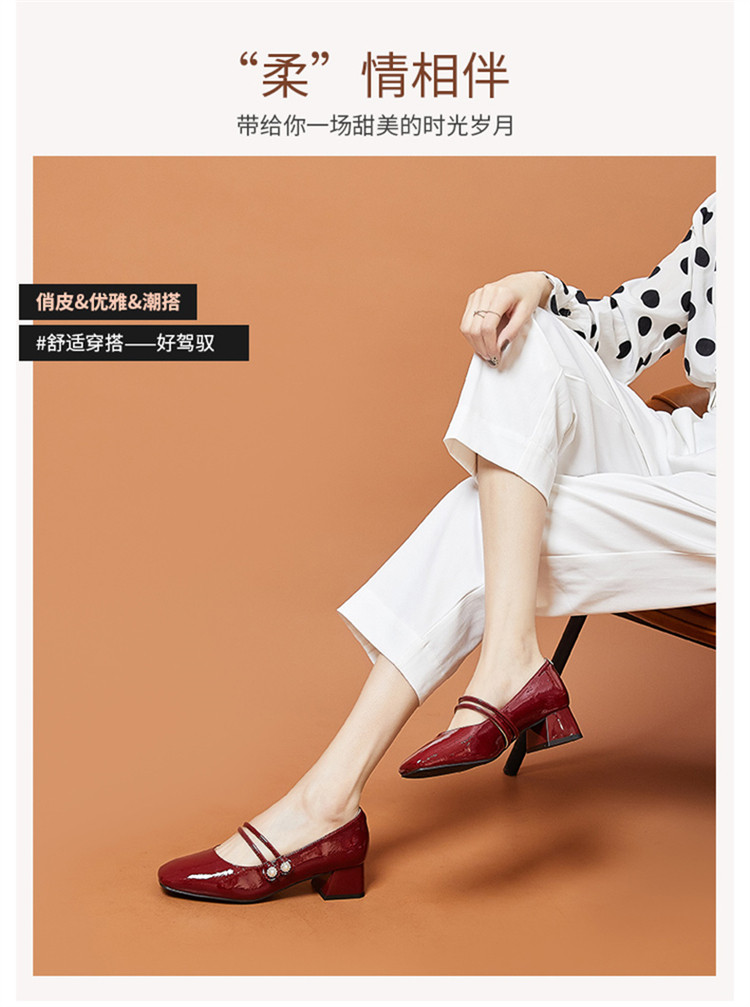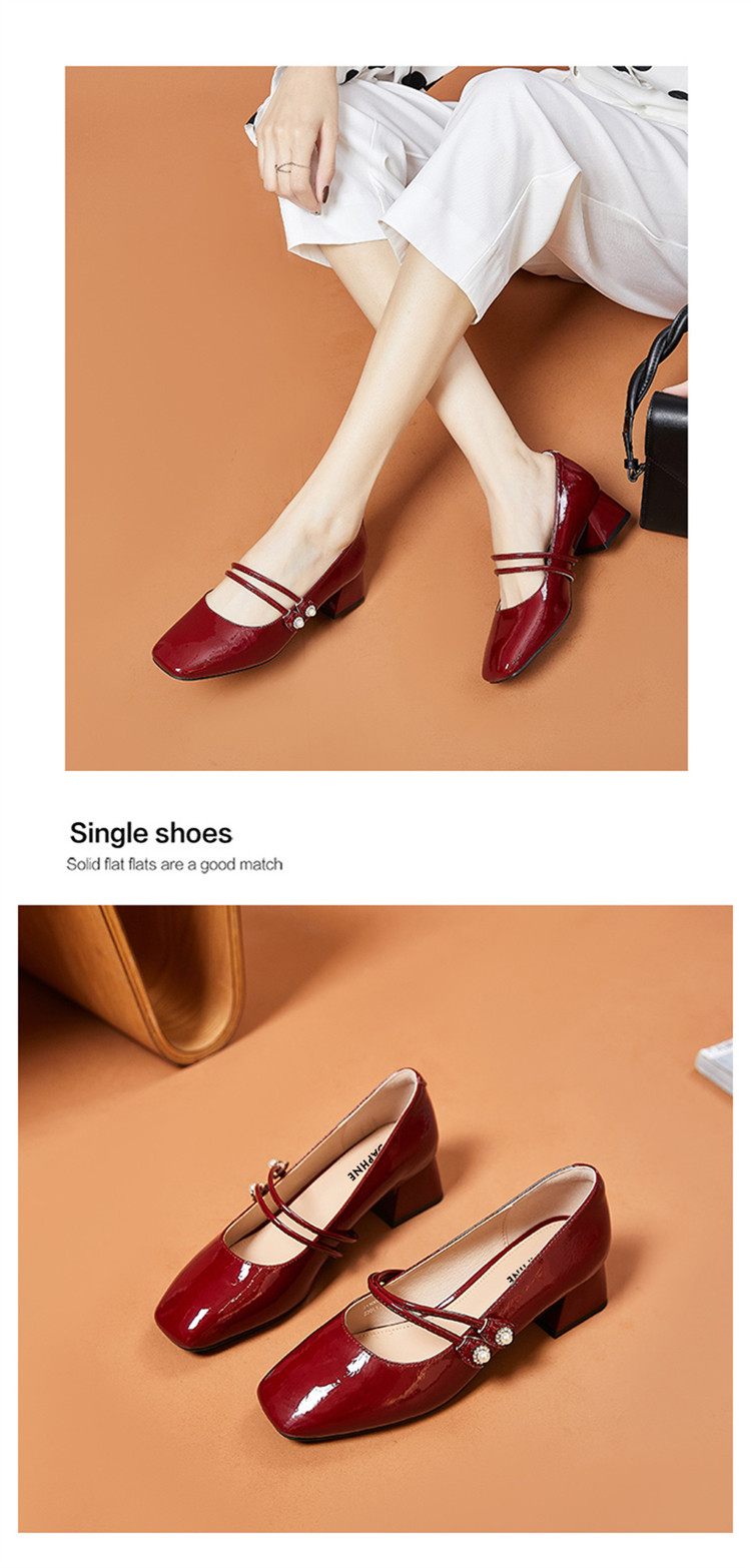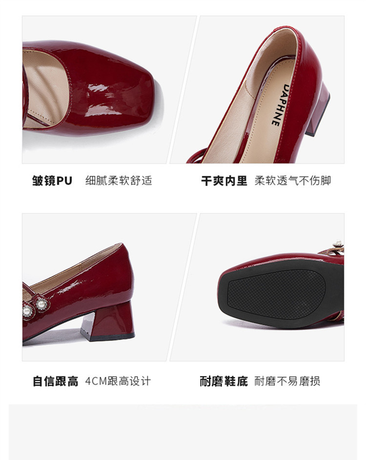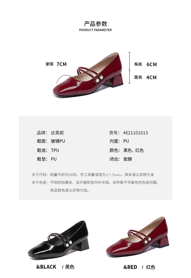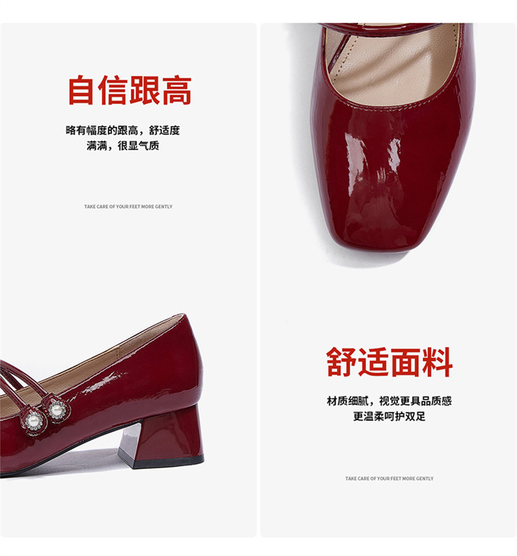 商品名称:【水钻双扣】夏季红色婚鞋玛丽珍鞋女时尚单鞋百搭通勤鞋时装鞋 618007