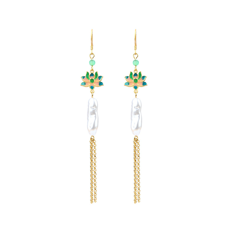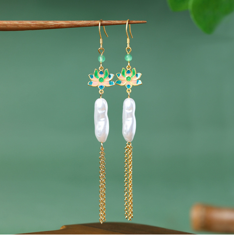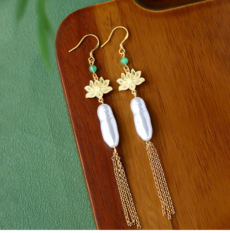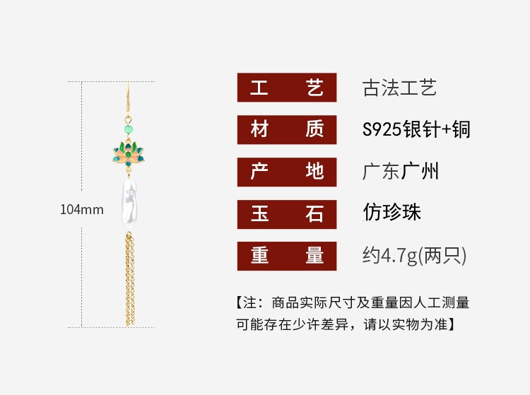 商品名称:彤彤兔 中国风好运莲莲巴洛克仿异形珍珠耳环S925银针小众流苏耳饰