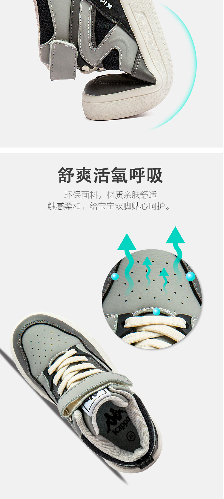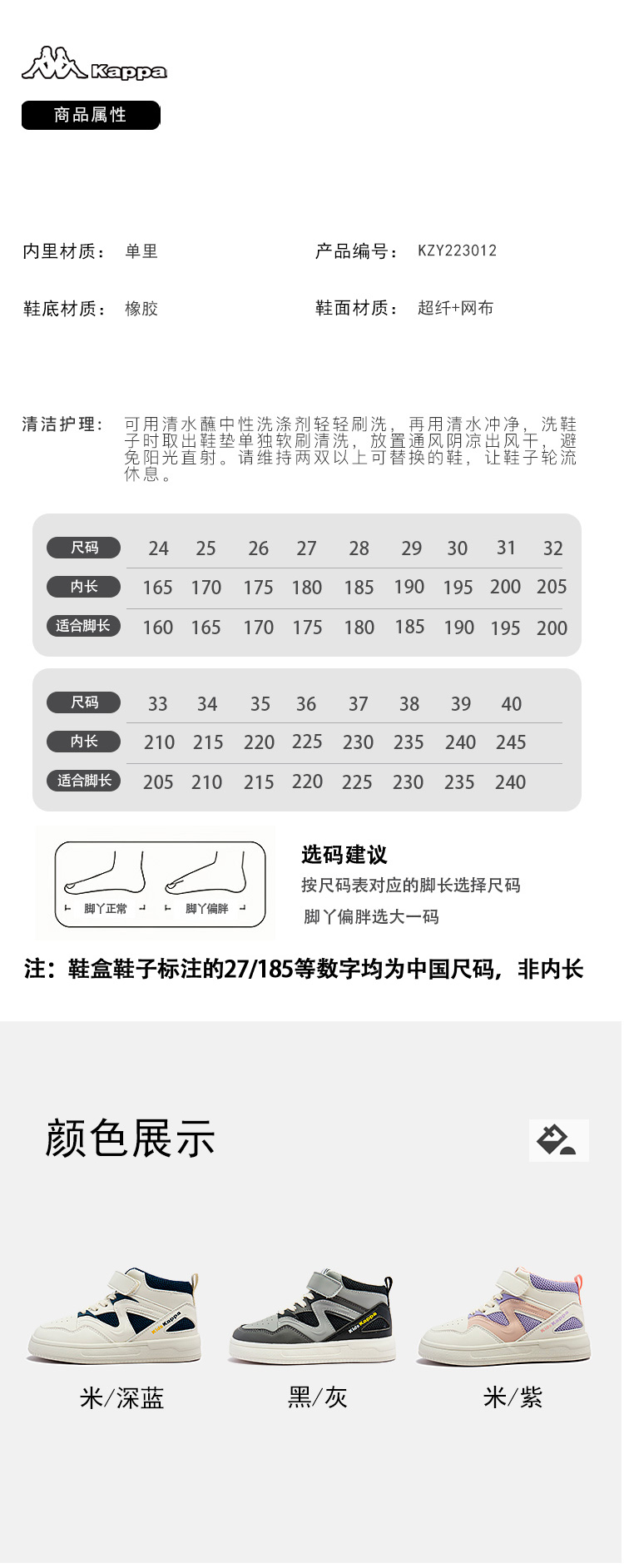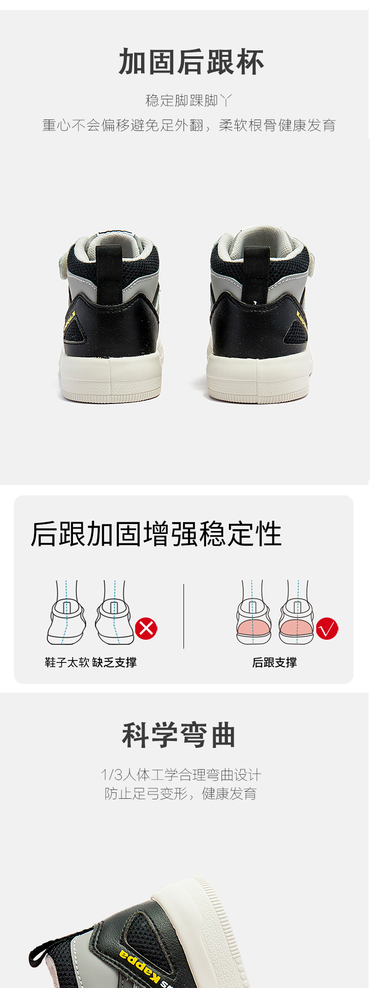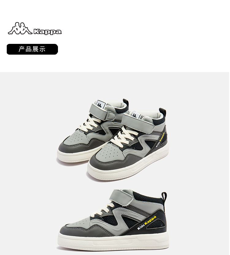 商品名称:Kappa Kids男女童儿童鞋高帮鞋2024春秋季新款透气休闲板鞋中大童鞋子运动鞋