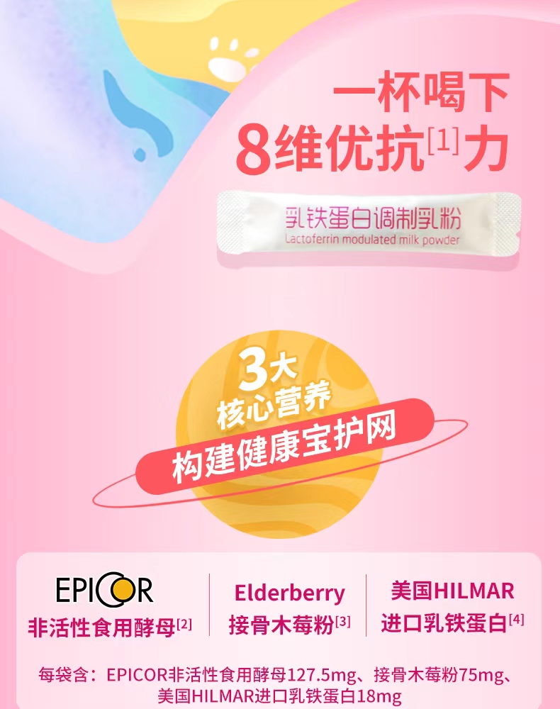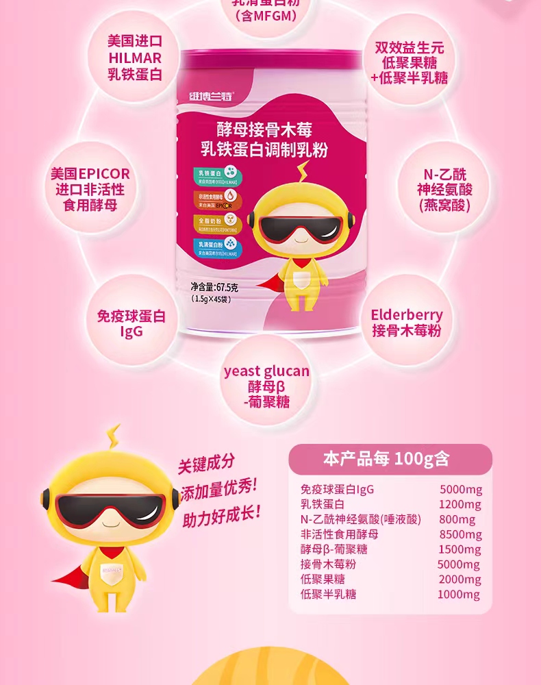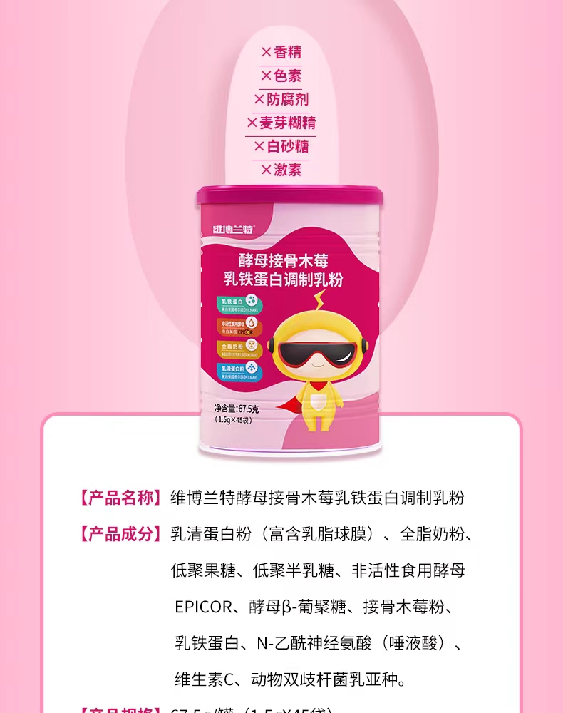 商品名称:维博兰特酵母接骨木莓免疫球乳铁蛋白调制乳粉45袋 进口EPICOR乳铁蛋白乳清蛋白调制乳粉