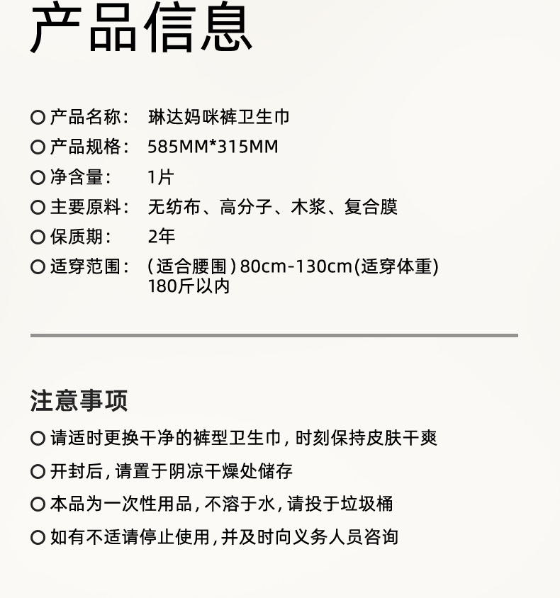 商品名称:【配计量称】琳达妈咪裤型产妇卫生巾计量型孕产妇使用产后月子恶露卫生巾1片/件