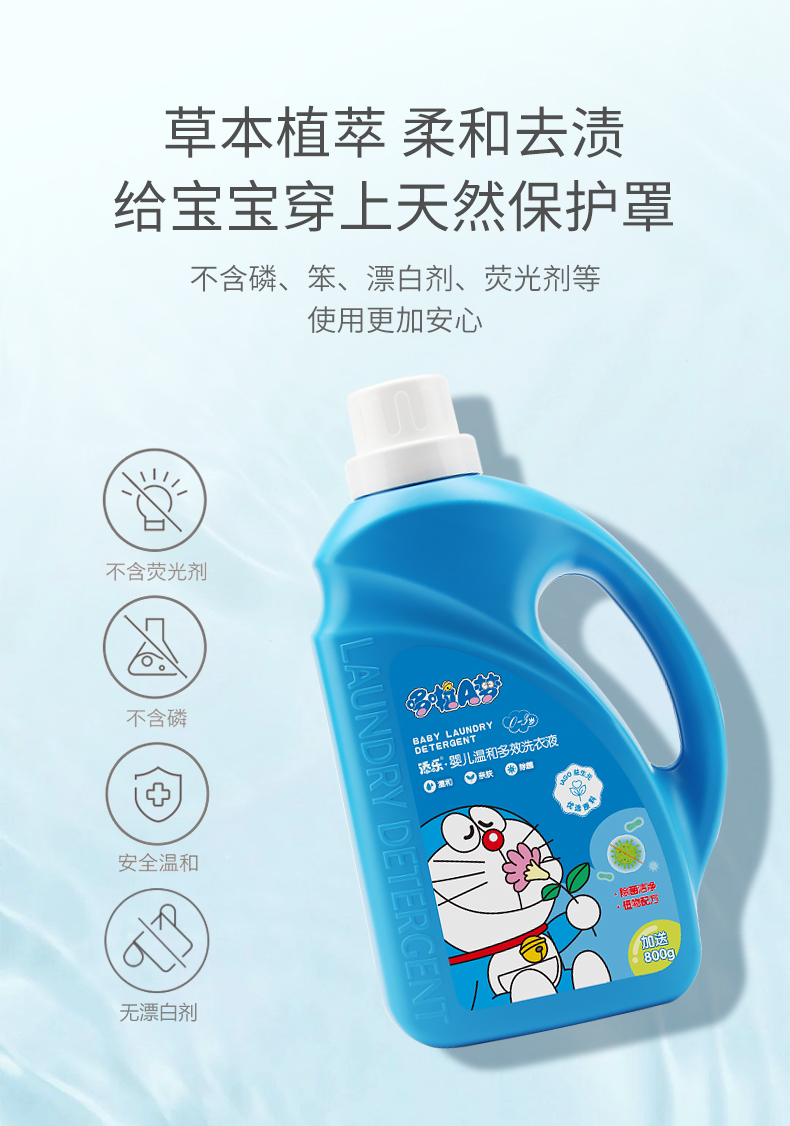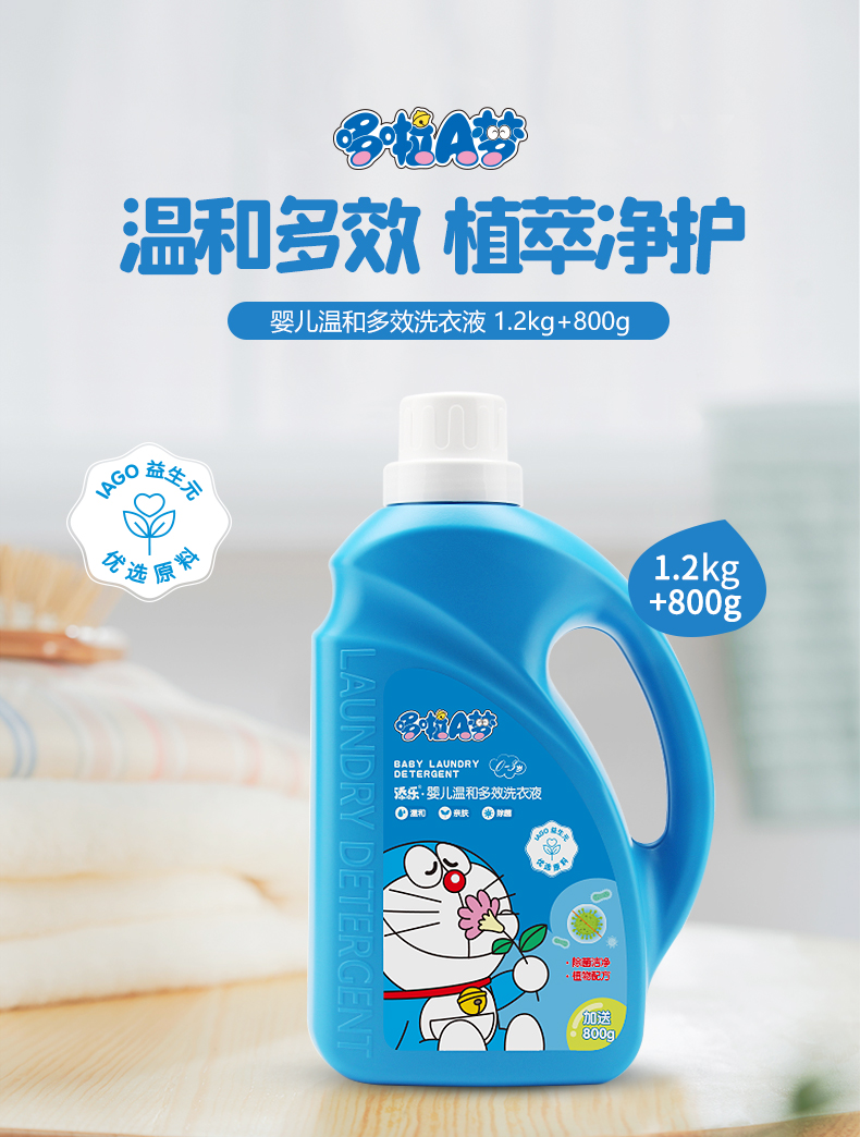 商品名称:【满16瓶起,买2送1】添乐哆啦A梦婴儿温和多效洗衣液4斤装家庭大瓶装洗衣皂液整箱批发