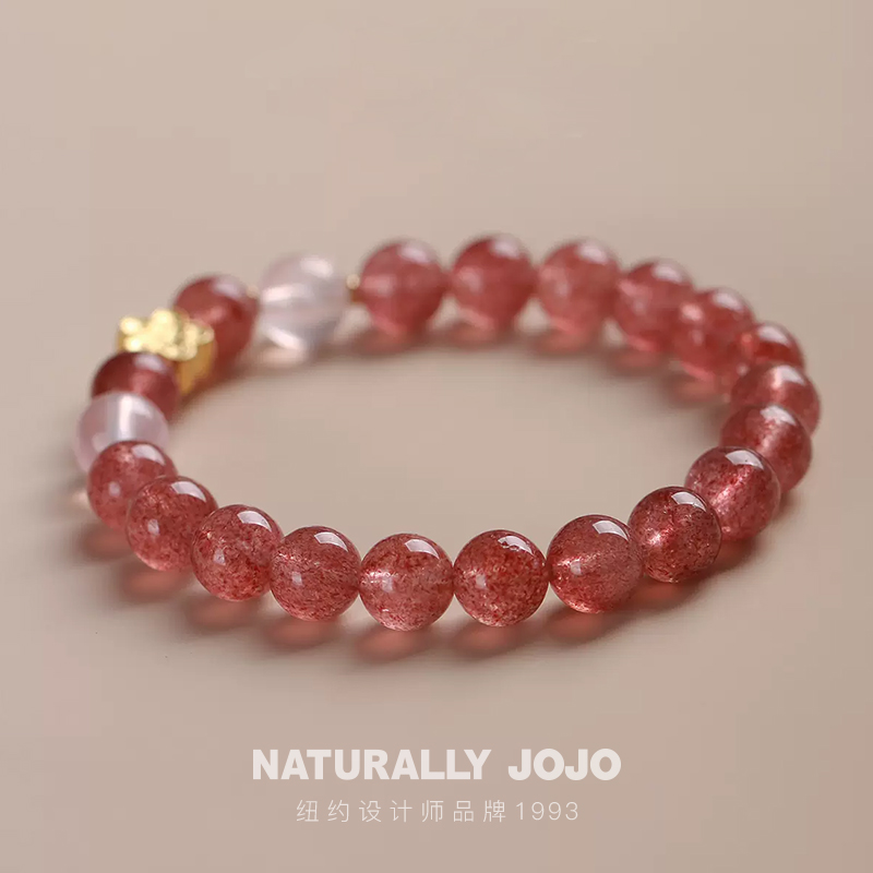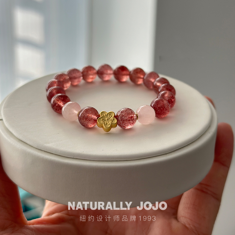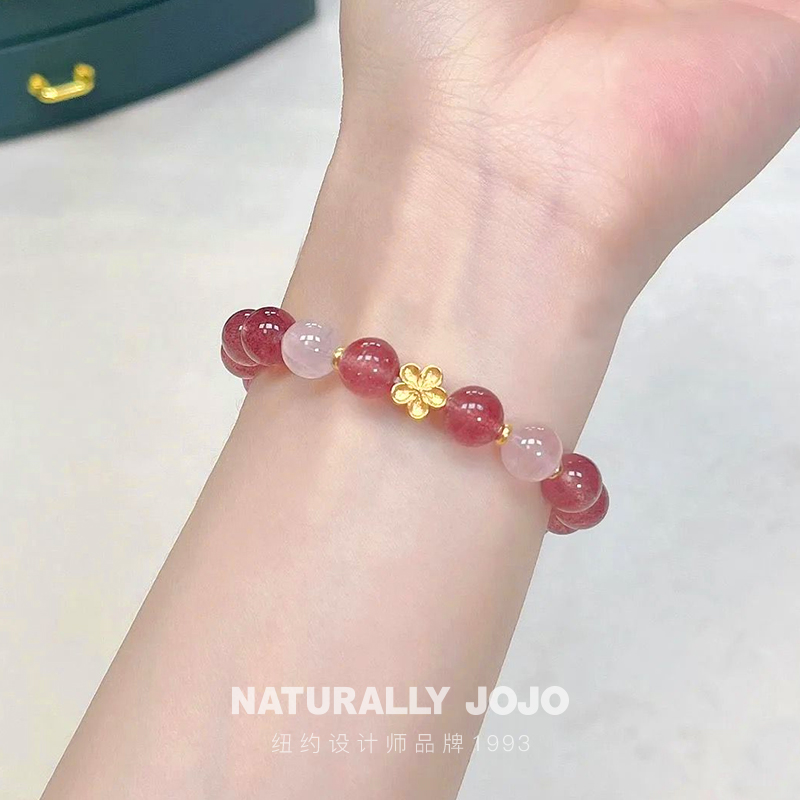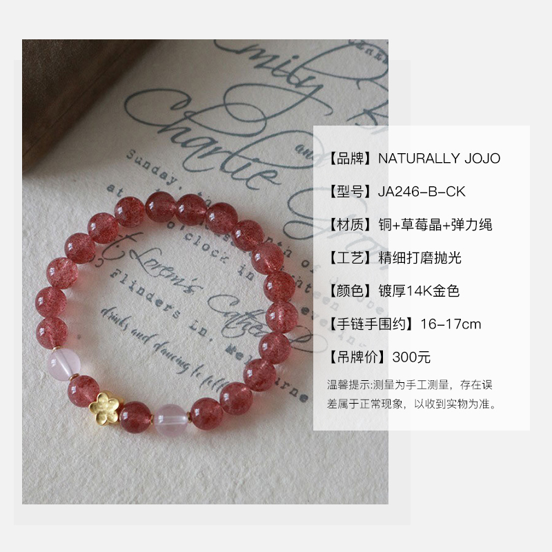 商品名称:NATURALLY JOJO女士新款灼灼桃花天然鸽血红级草莓晶原创设计手链饰品女生生日礼物