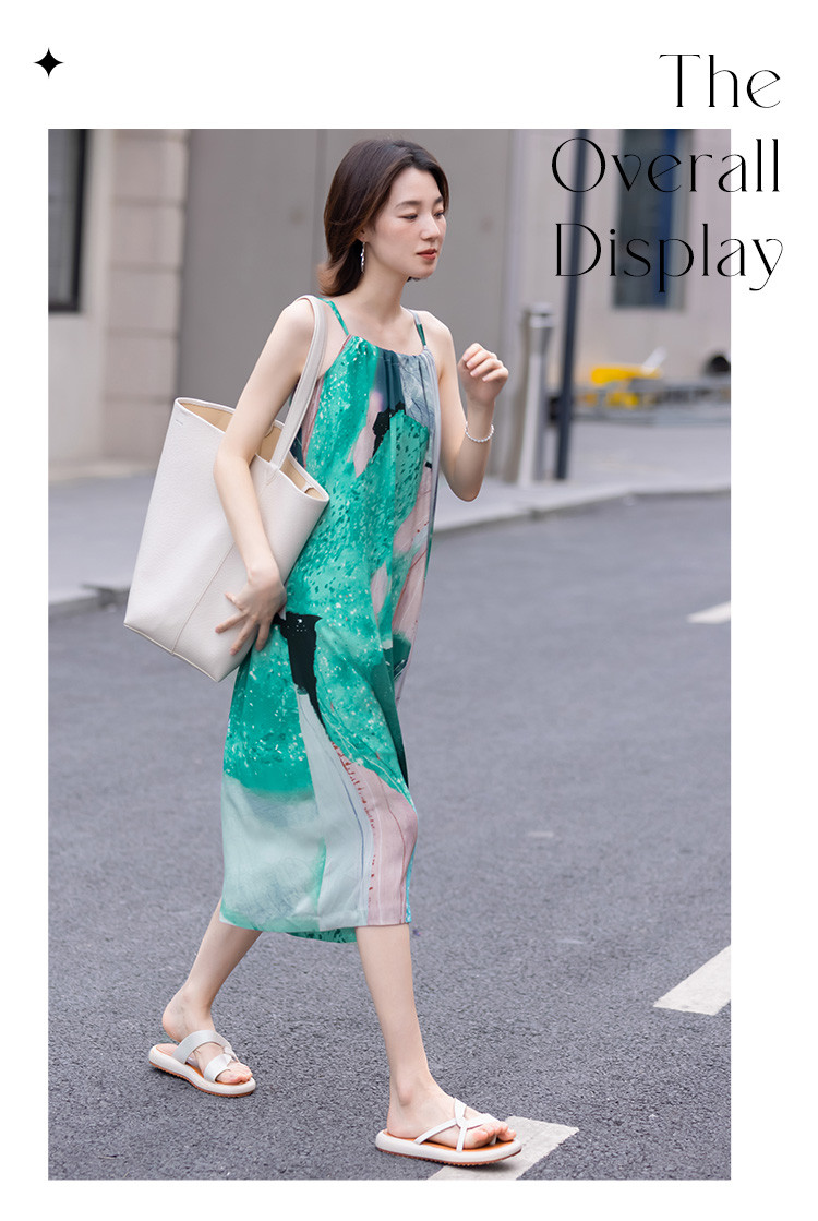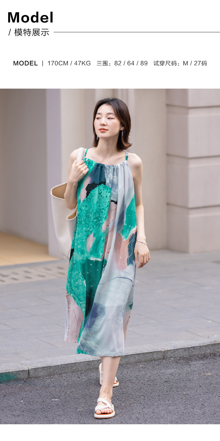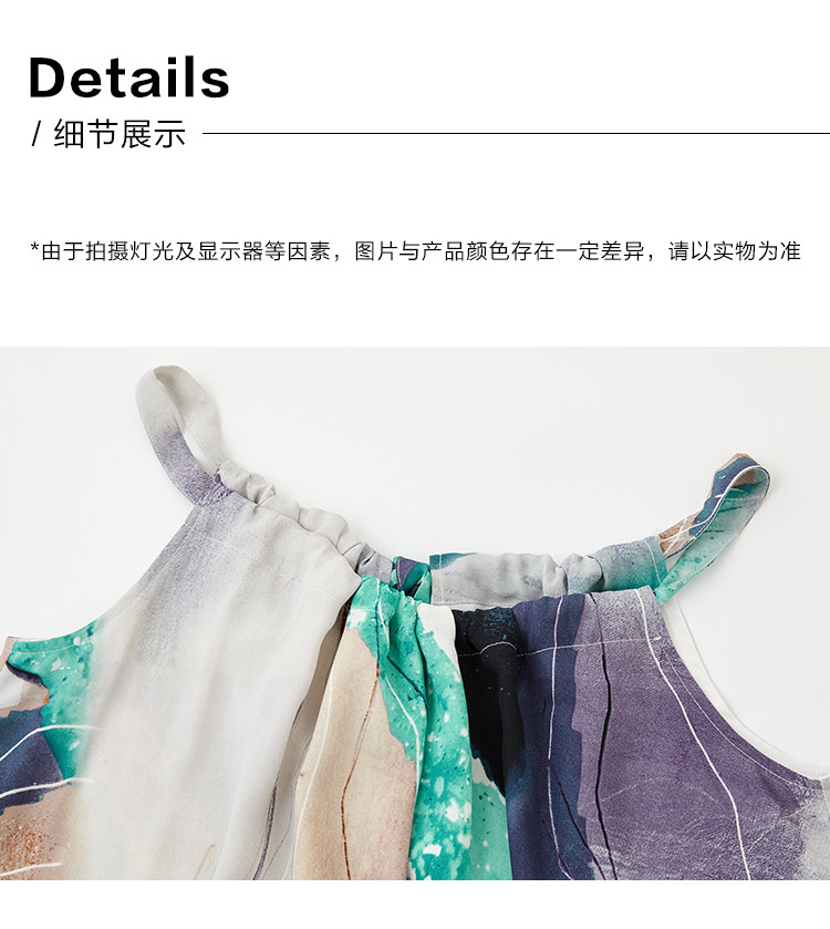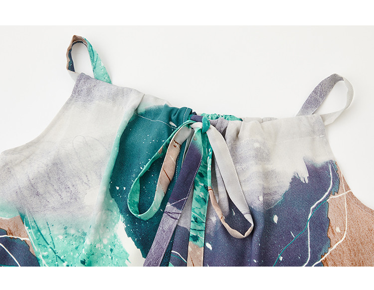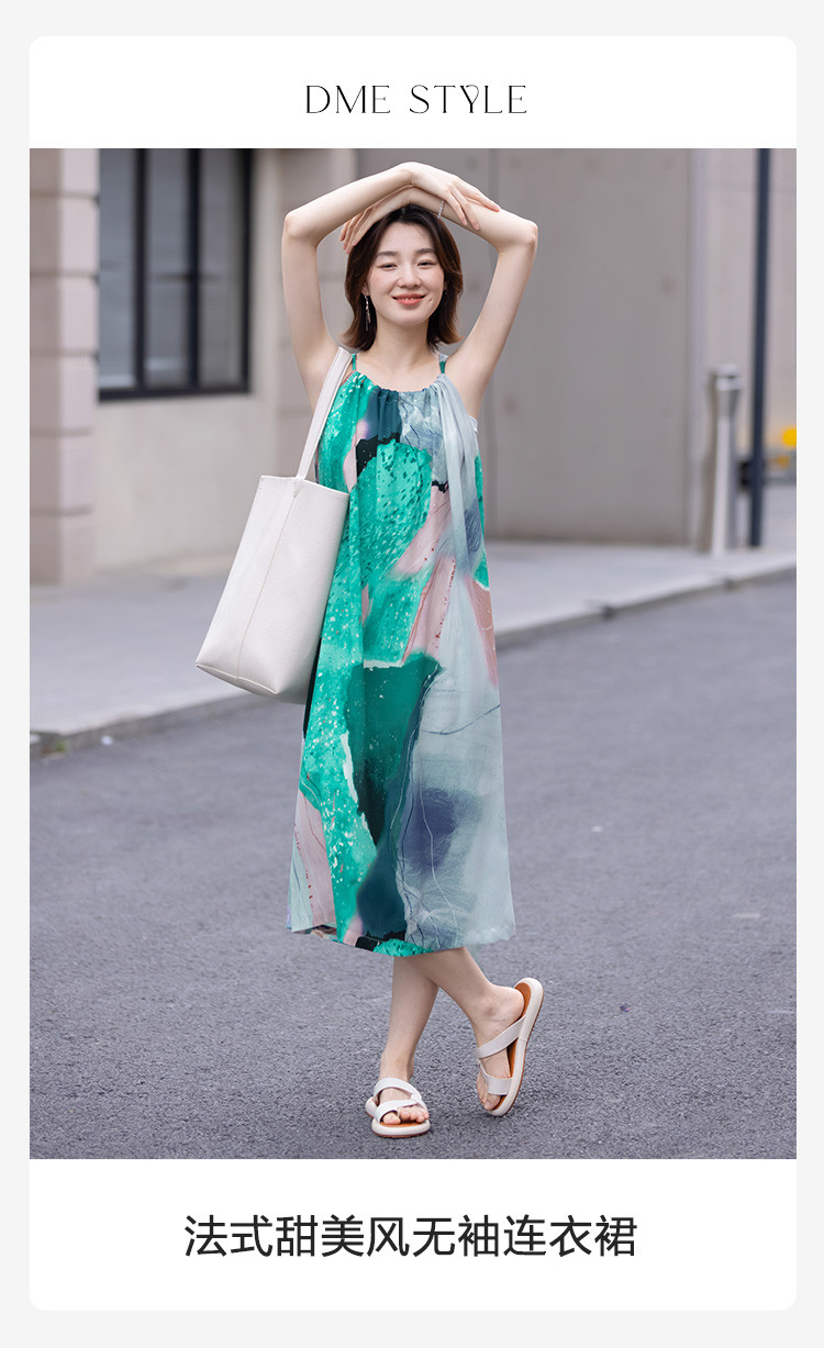 【领子抽绳绑带】夏款假日风抽象印花无袖连衣裙女 282690