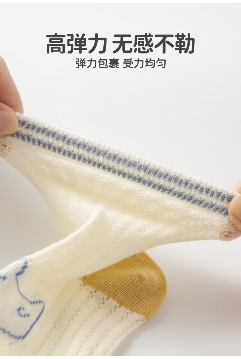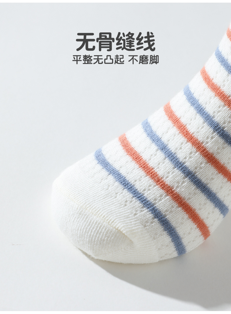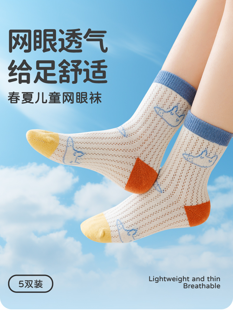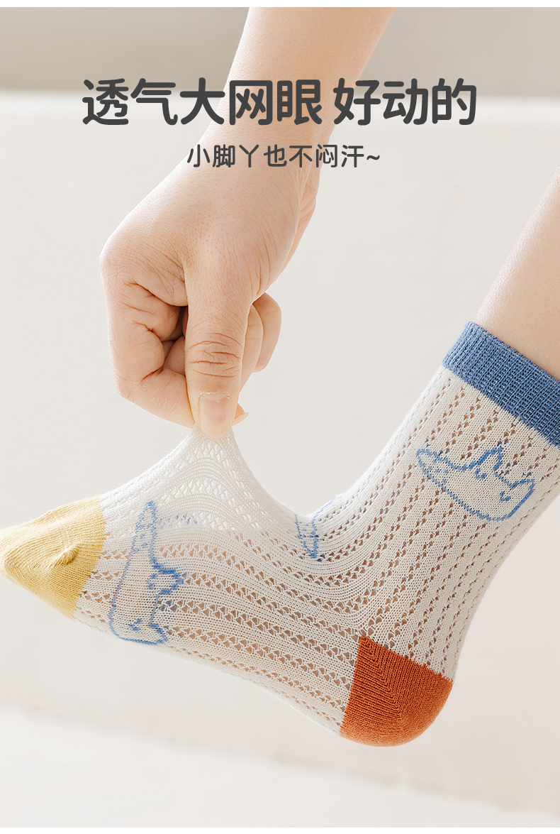 商品名称:彩桥5双装儿童袜子夏季薄款网眼袜棉轻薄透气学生运动袜