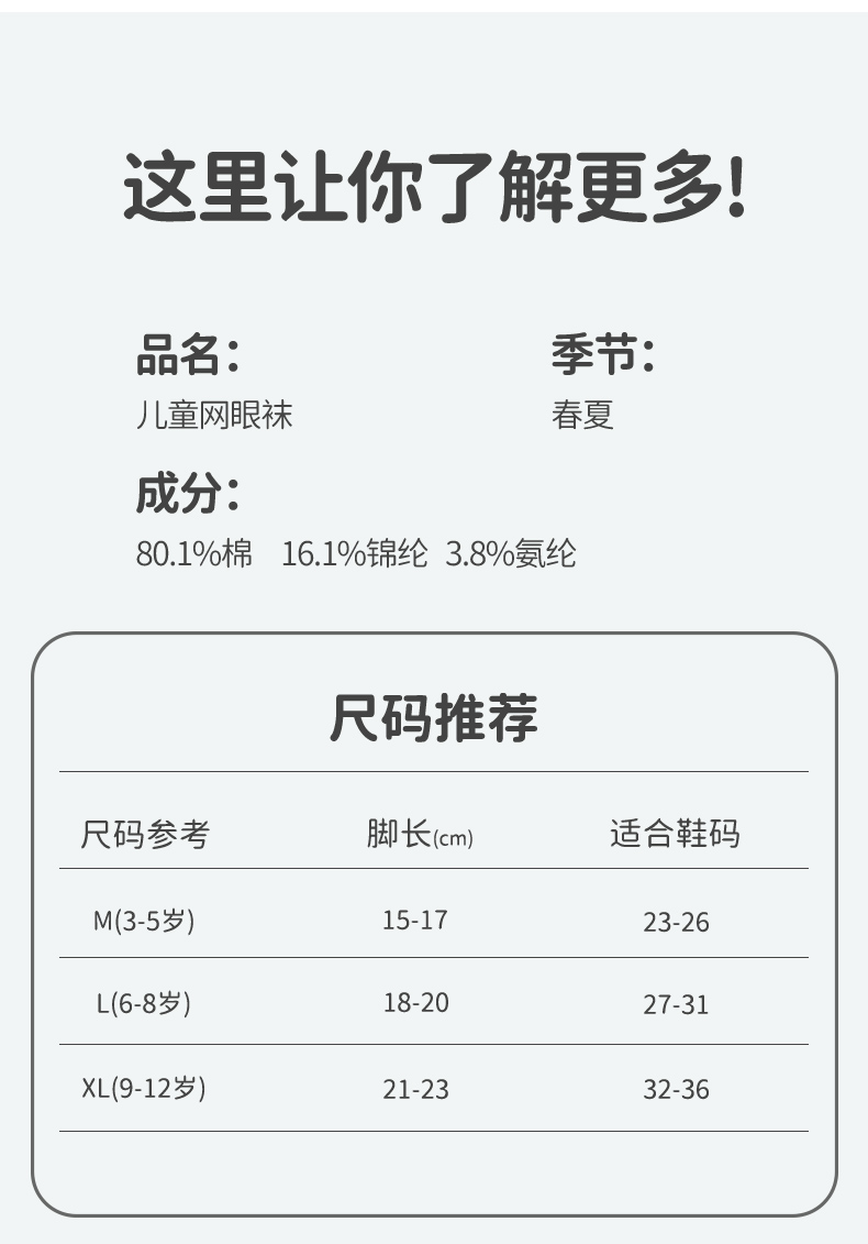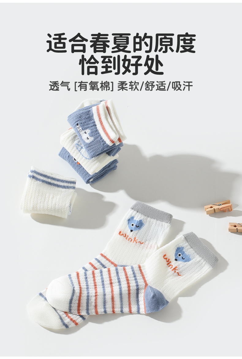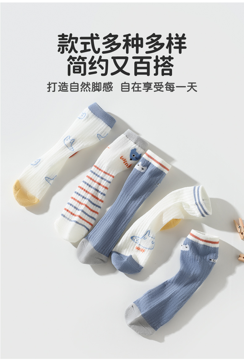 商品名称:彩桥5双装儿童袜子夏季薄款网眼袜棉轻薄透气学生运动袜