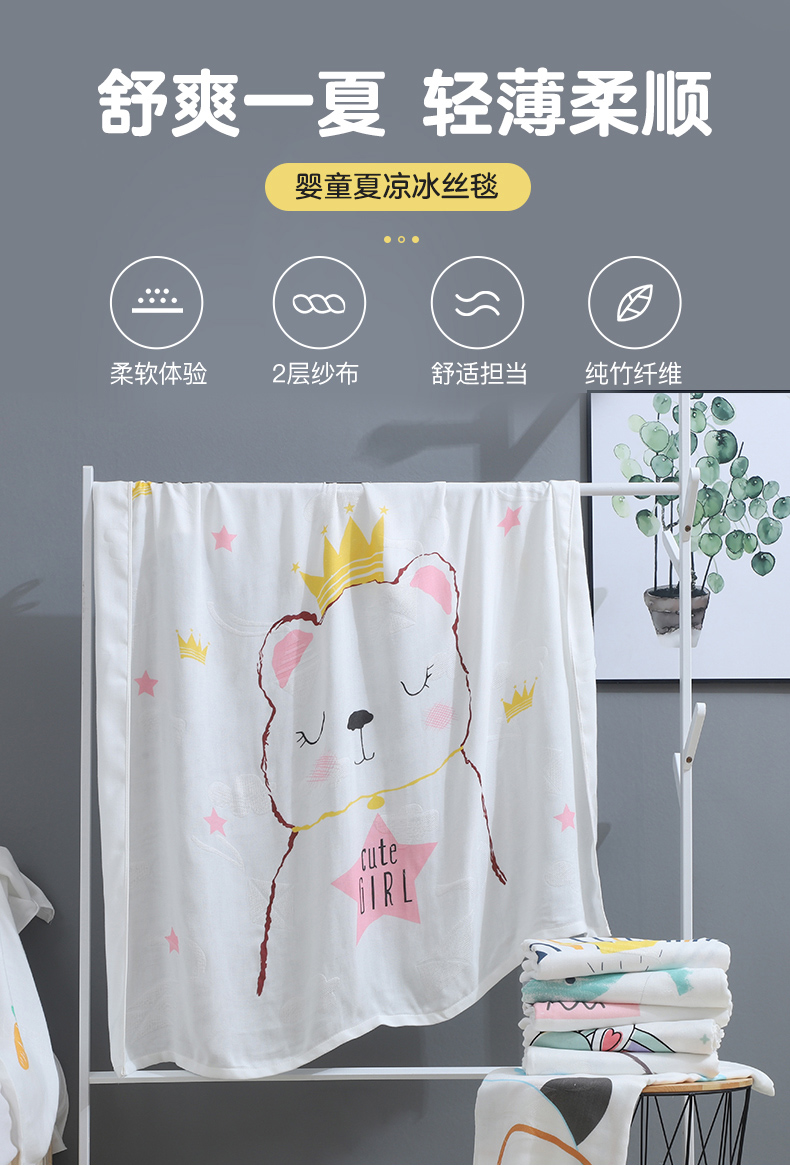 动感光波冷感毯凉凉冰丝毯婴儿夏季纯棉竹纤维盖毯宝宝薄被子纱布新生儿童空调被