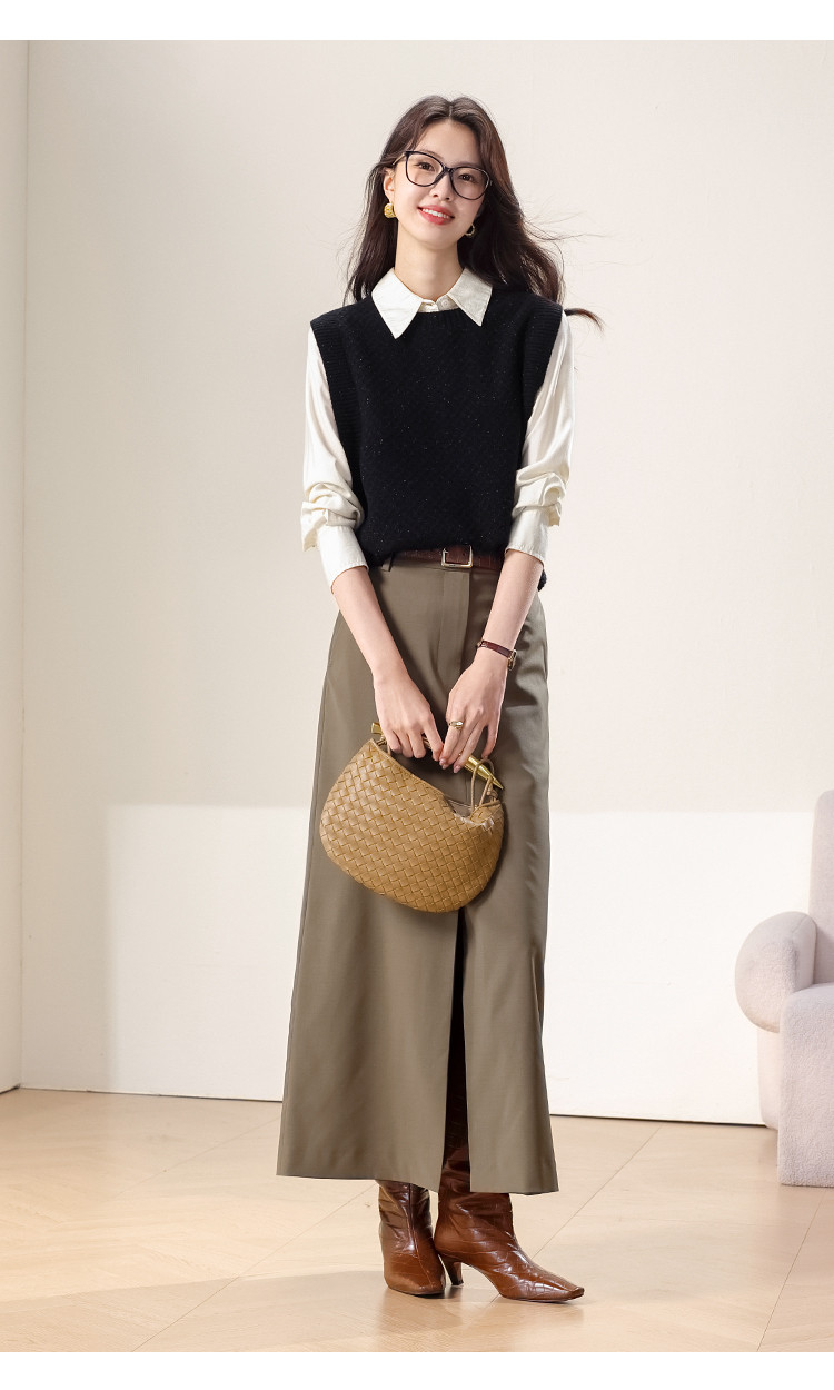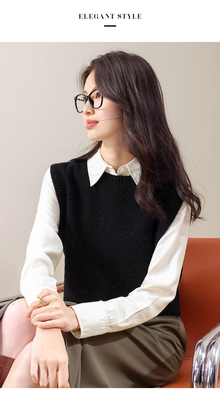 【100%绵羊毛】百搭纯色阔版羊毛杉女背心无袖针织衫马甲 915411