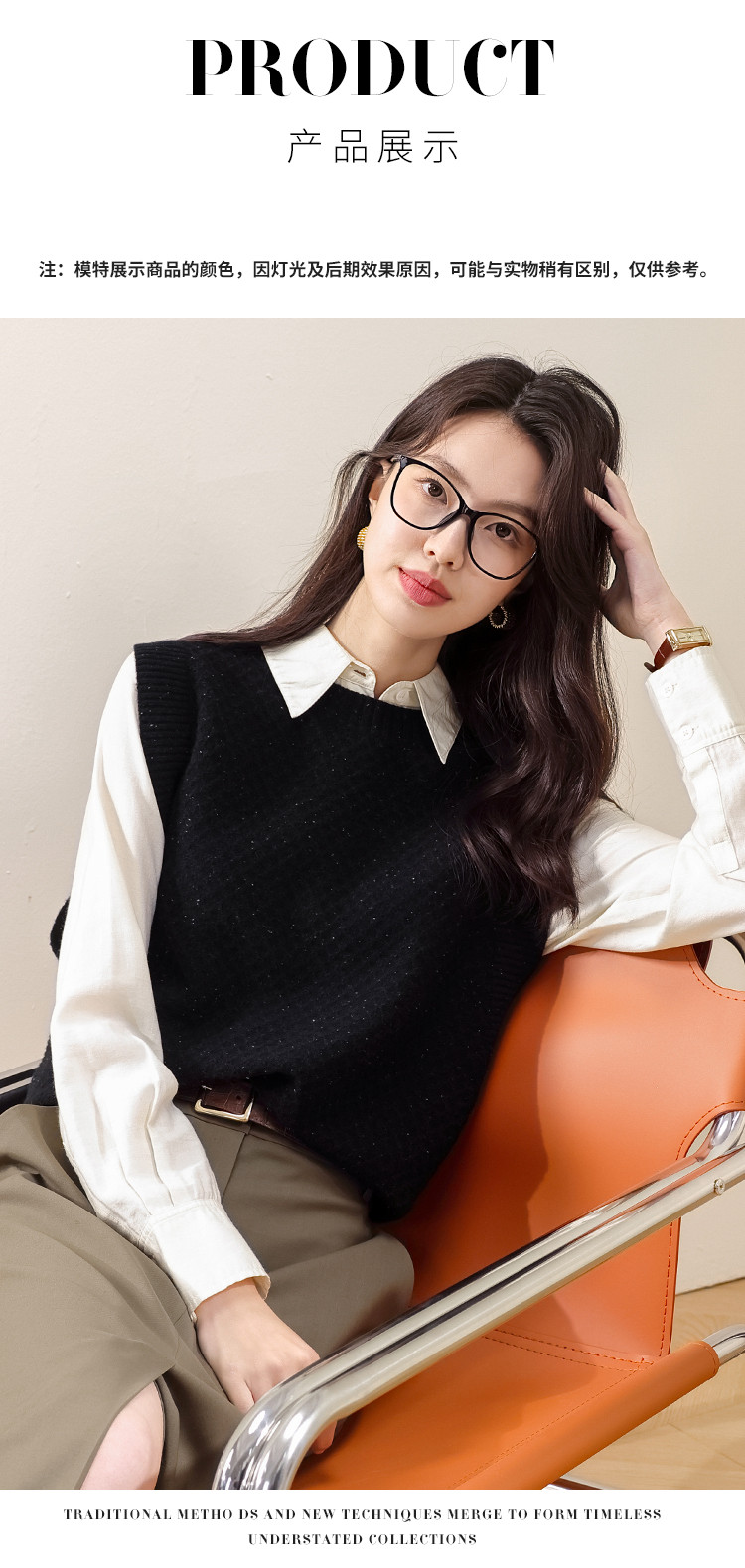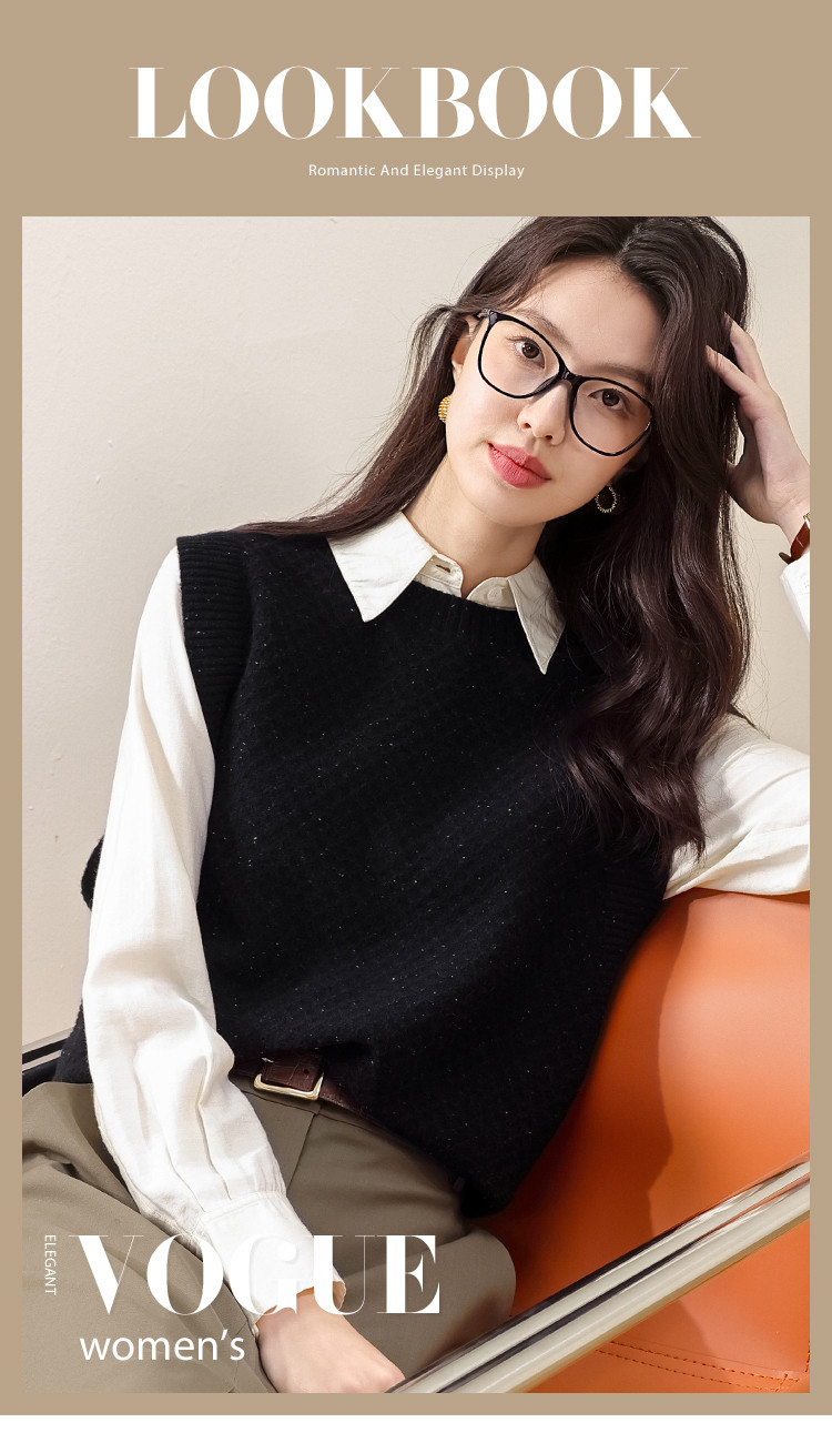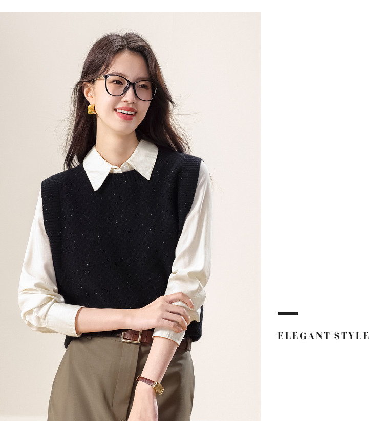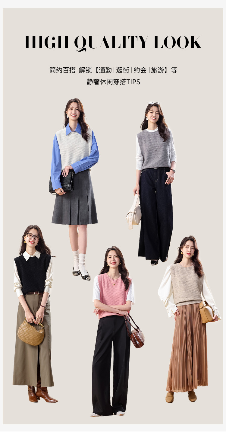 商品名称:【100%绵羊毛】百搭纯色阔版羊毛杉女背心无袖针织衫马甲 915411