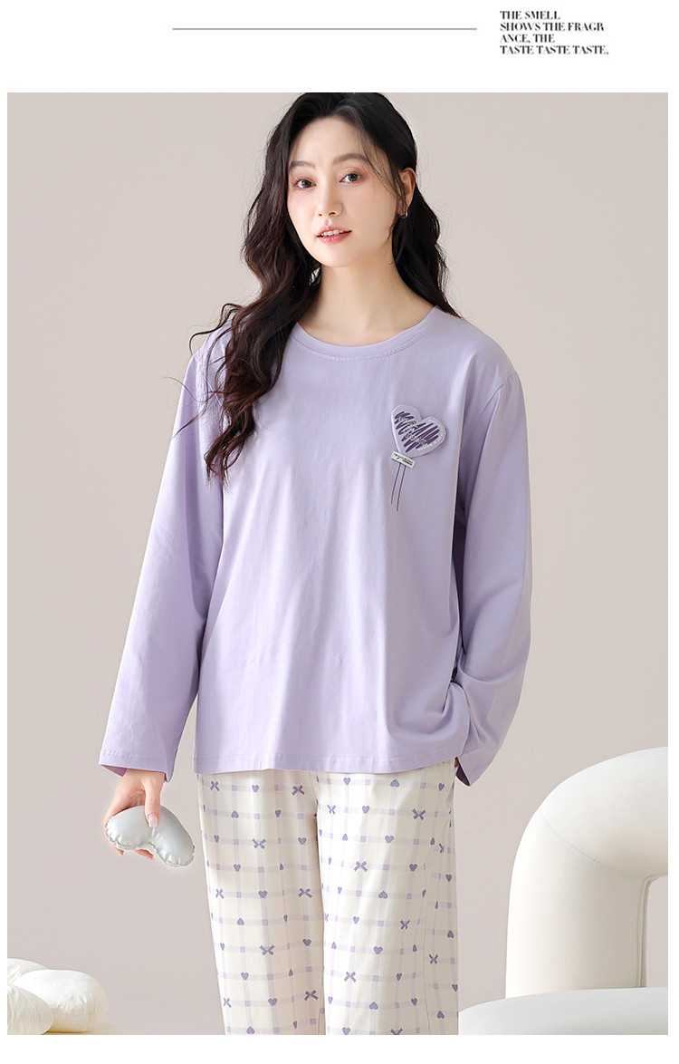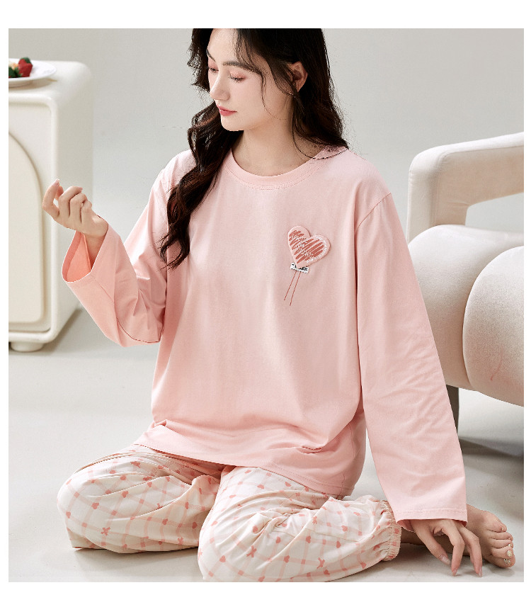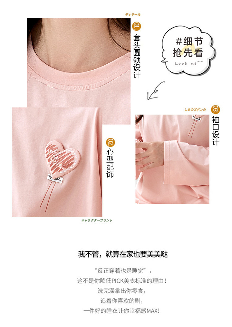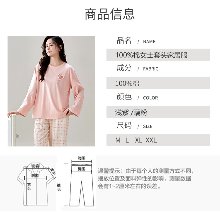 商品名称:【100%纯棉】宽松舒适束脚睡裤女士家居服套装春秋睡衣可外穿 043166