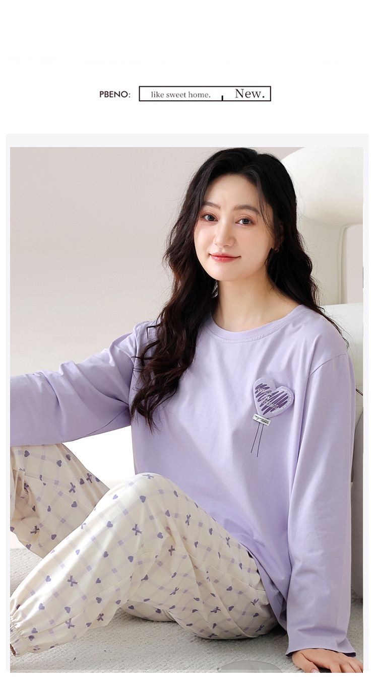 【100%纯棉】宽松舒适束脚睡裤女士家居服套装春秋睡衣可外穿 043166