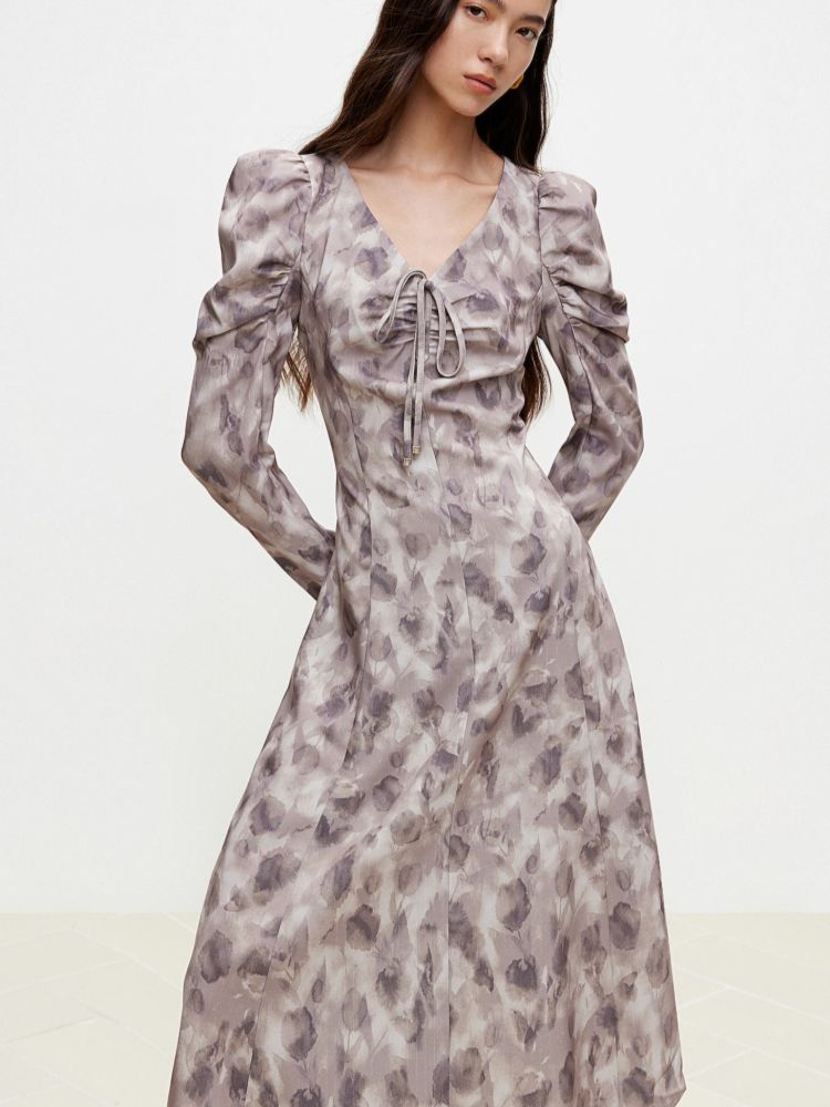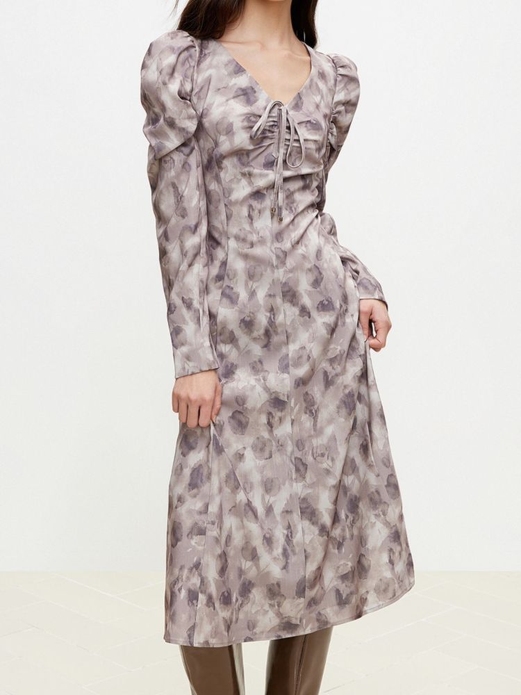 【中长裙】夏季设计感气质风显瘦v领连衣裙女 004442