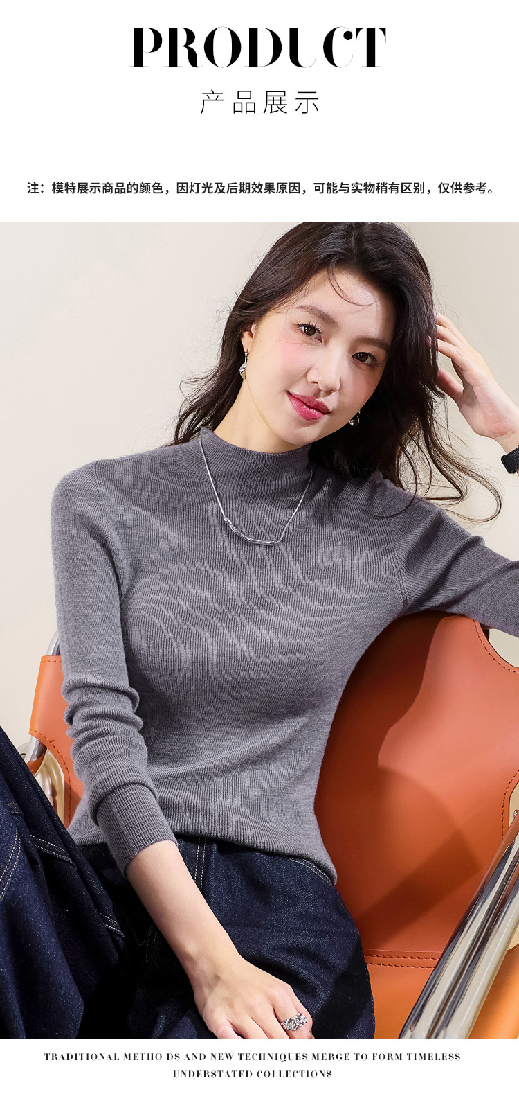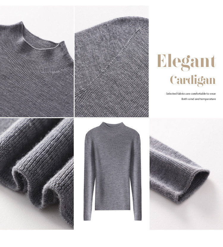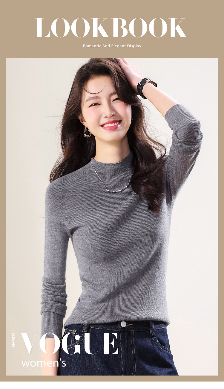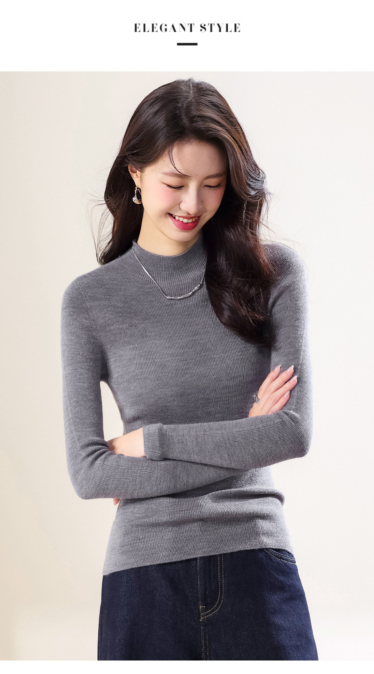 商品名称:【100%绵羊毛】纯色半高领全羊毛针织打底衫毛衣线衫春 035539