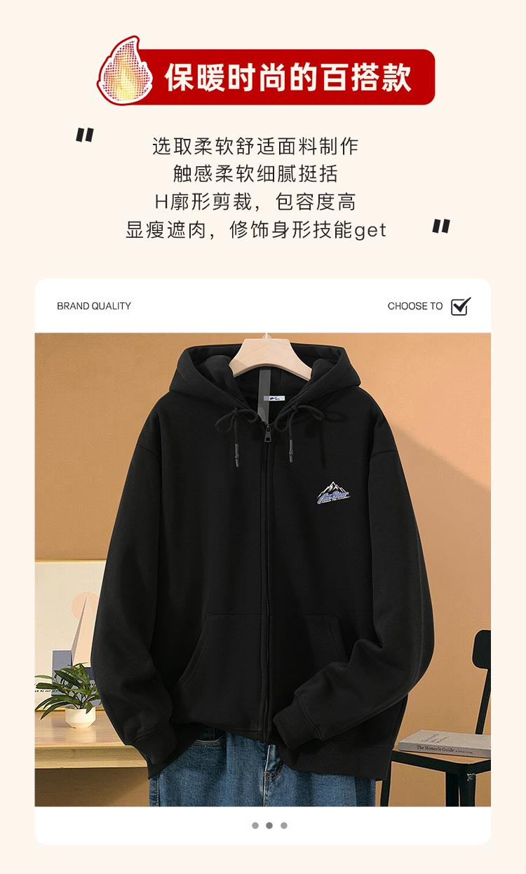 商品名称:【重磅棉】加绒可选美式开衫卫衣女百搭休闲上衣运动连帽拉链外套 378899