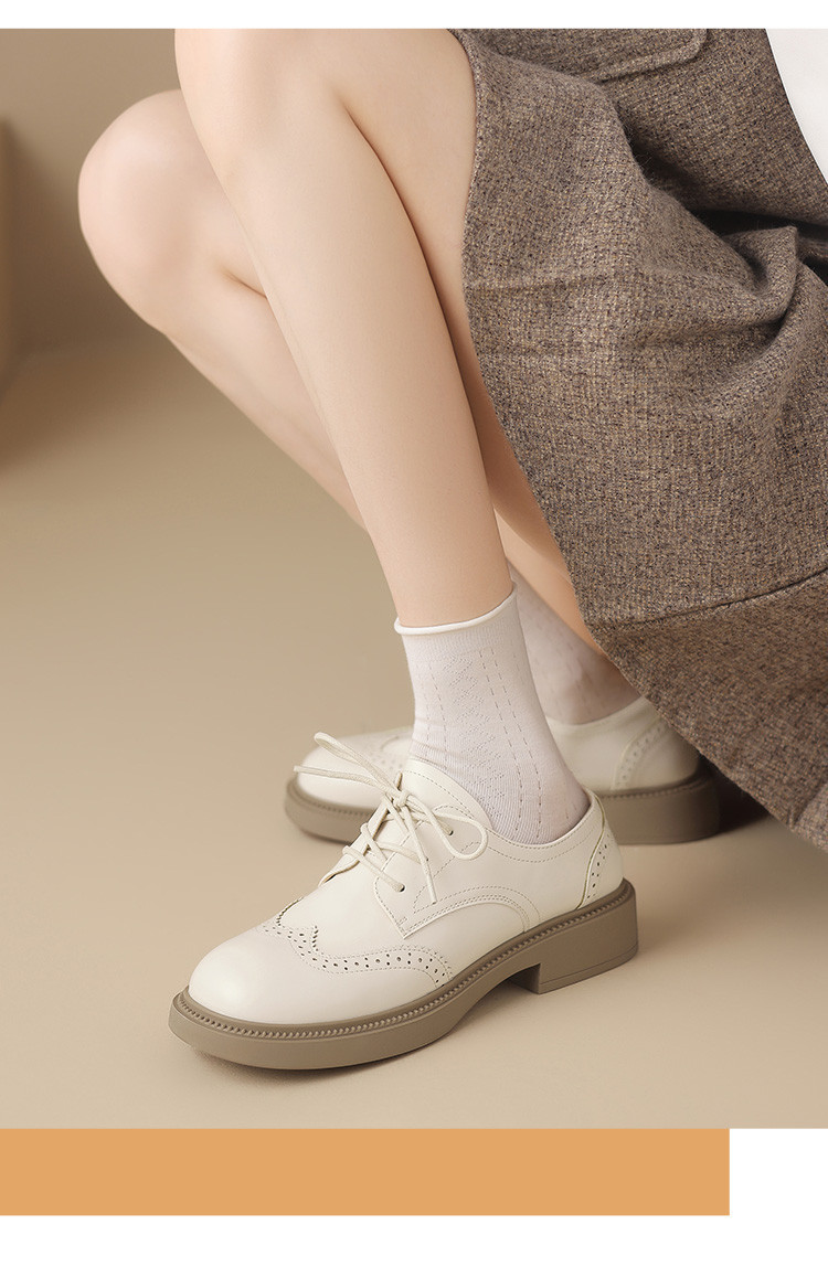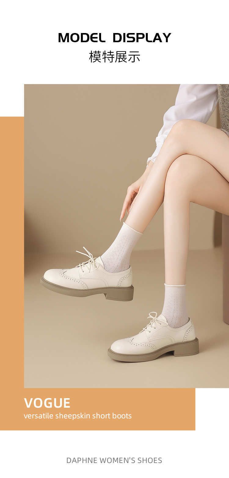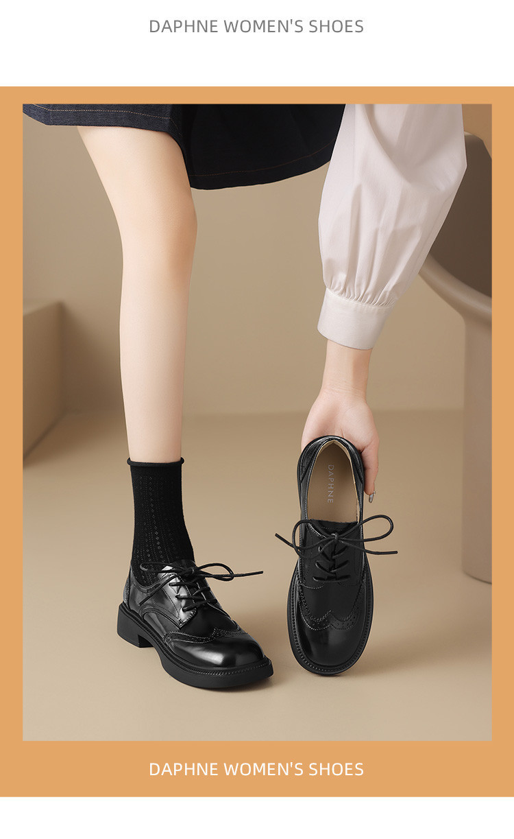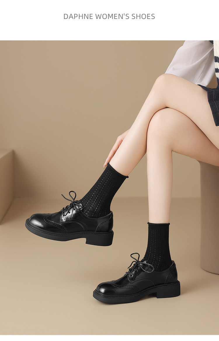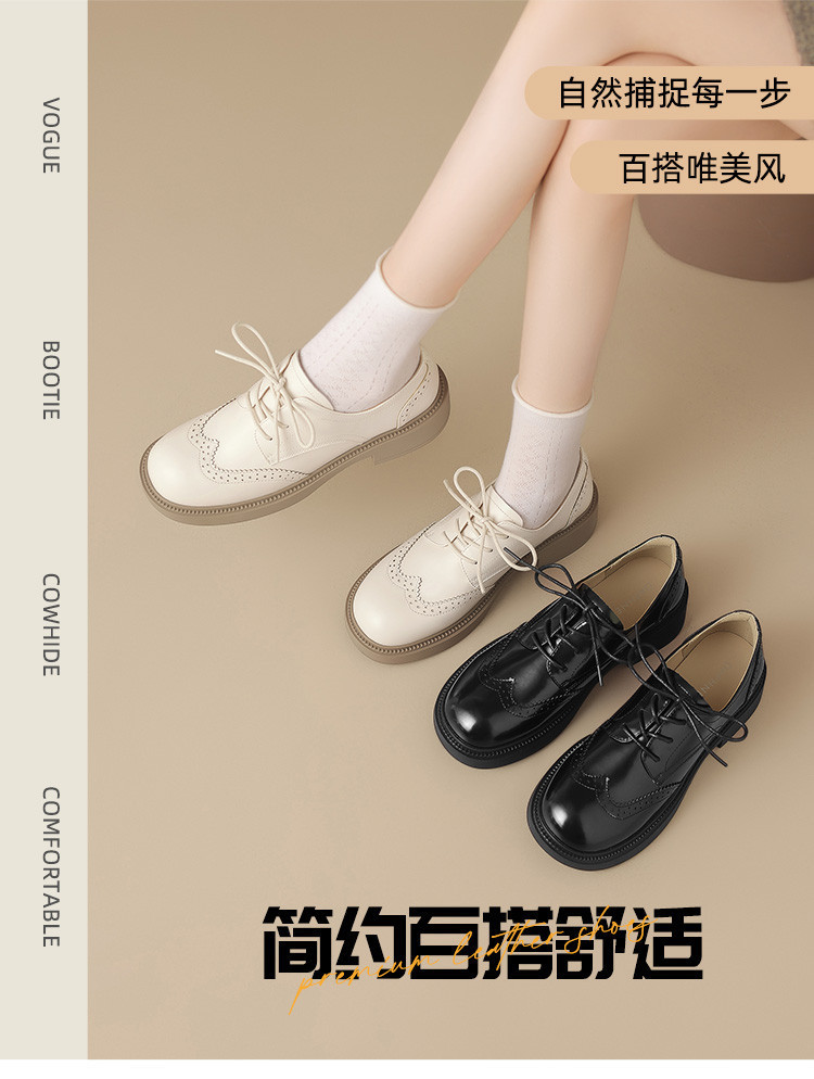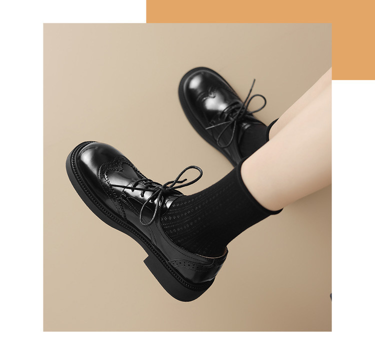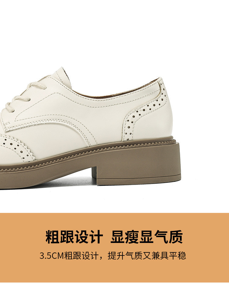 商品名称:经典圆头学院风系带女单鞋布洛克深口单鞋简约百搭通勤单鞋小皮鞋 899418