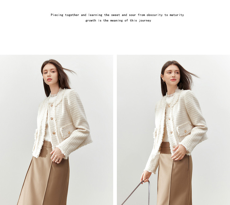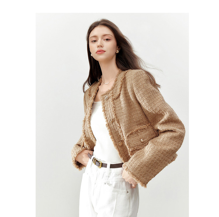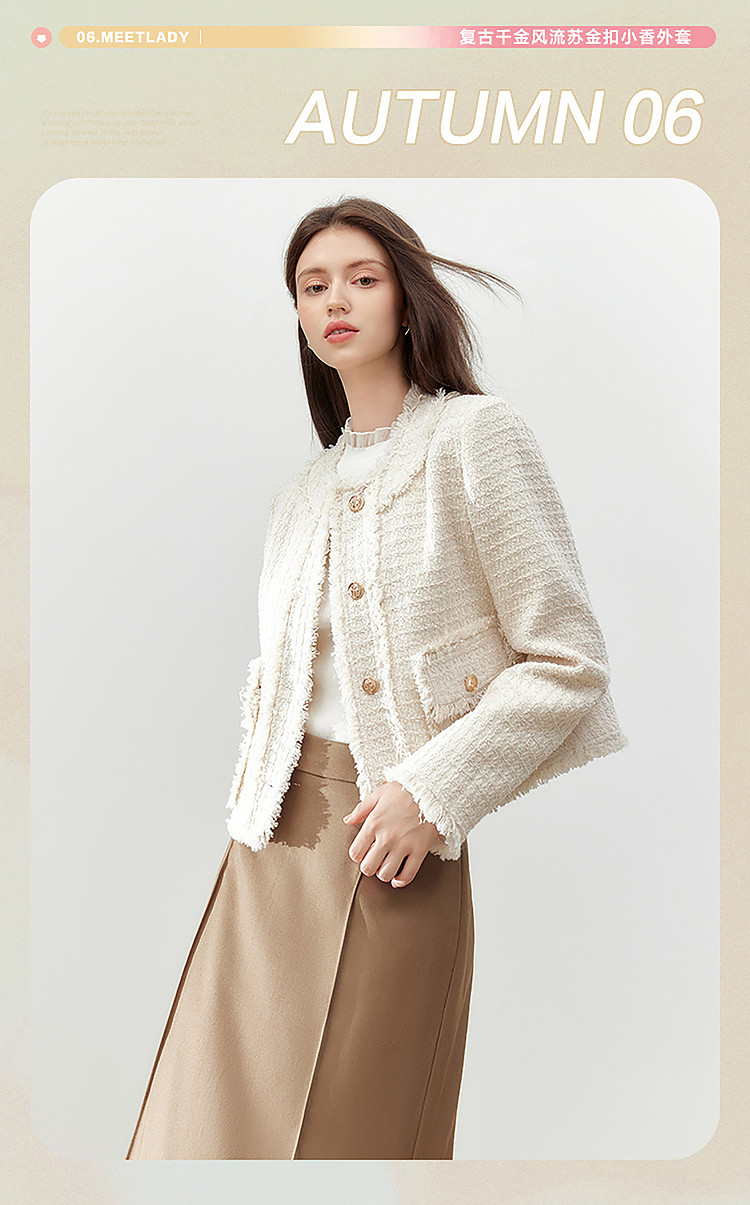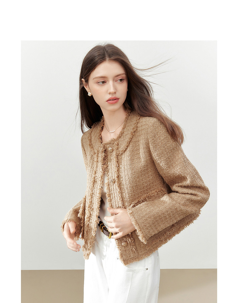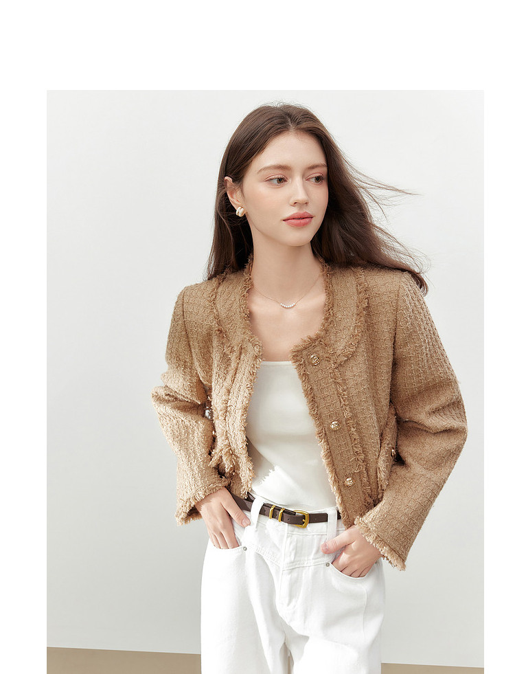 【2024秋季】复古千金小香风毛边短外套小个子气质通勤上衣 775636