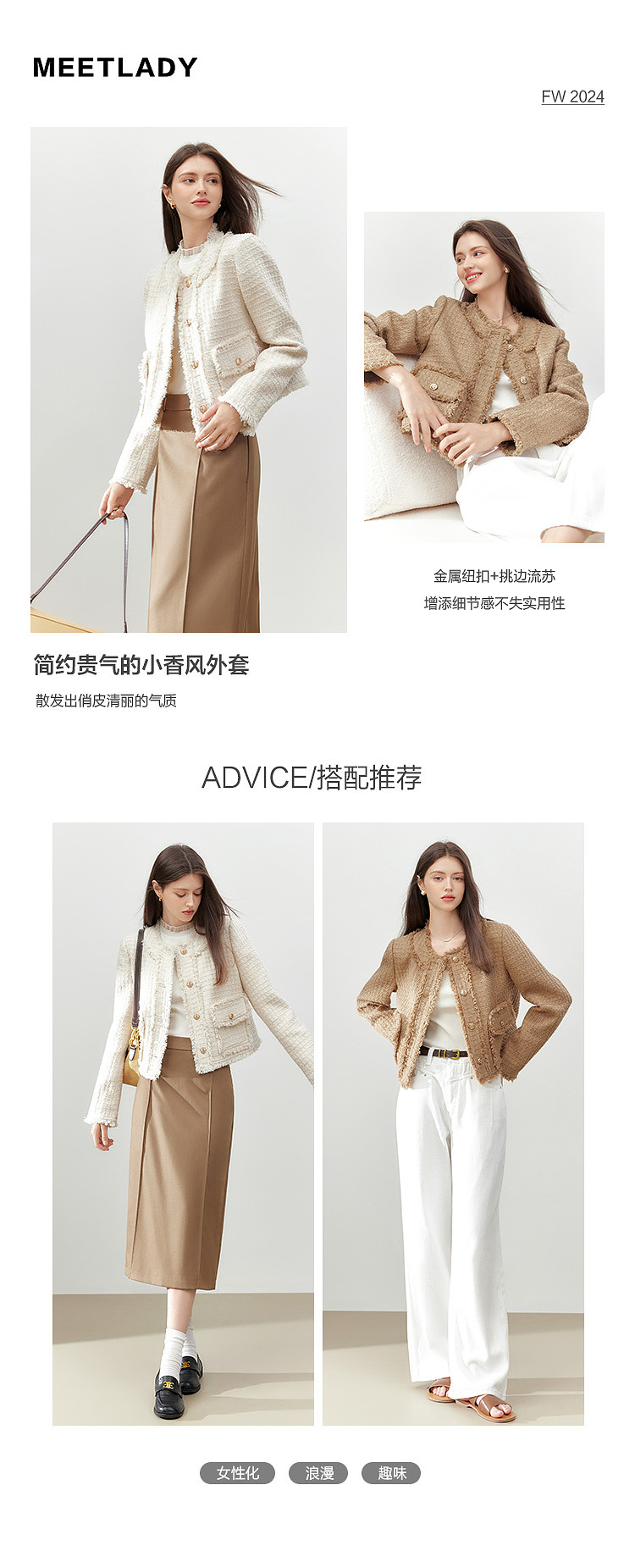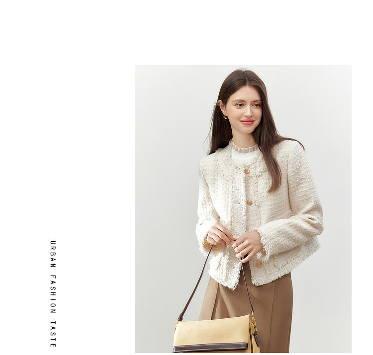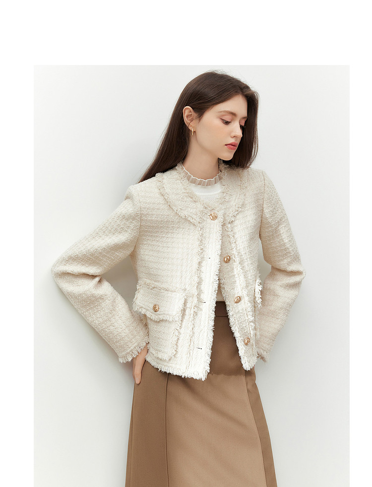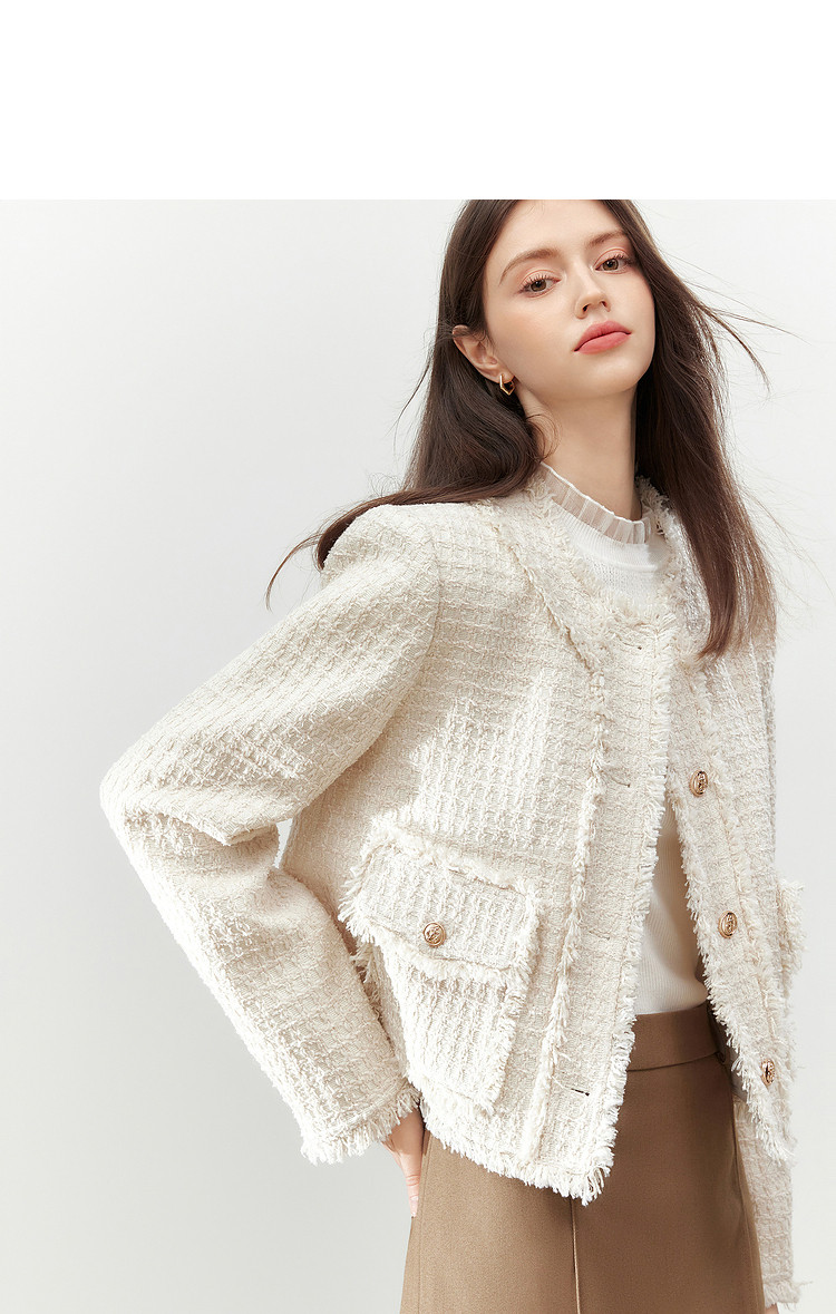 【2024秋季】复古千金小香风毛边短外套小个子气质通勤上衣 775636