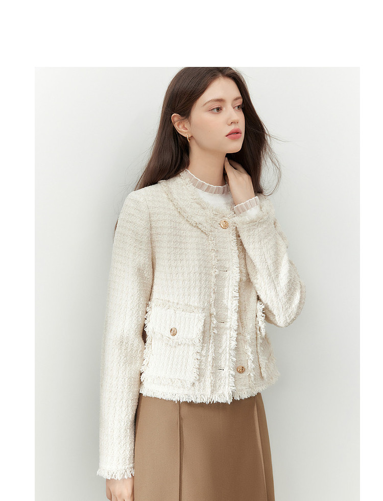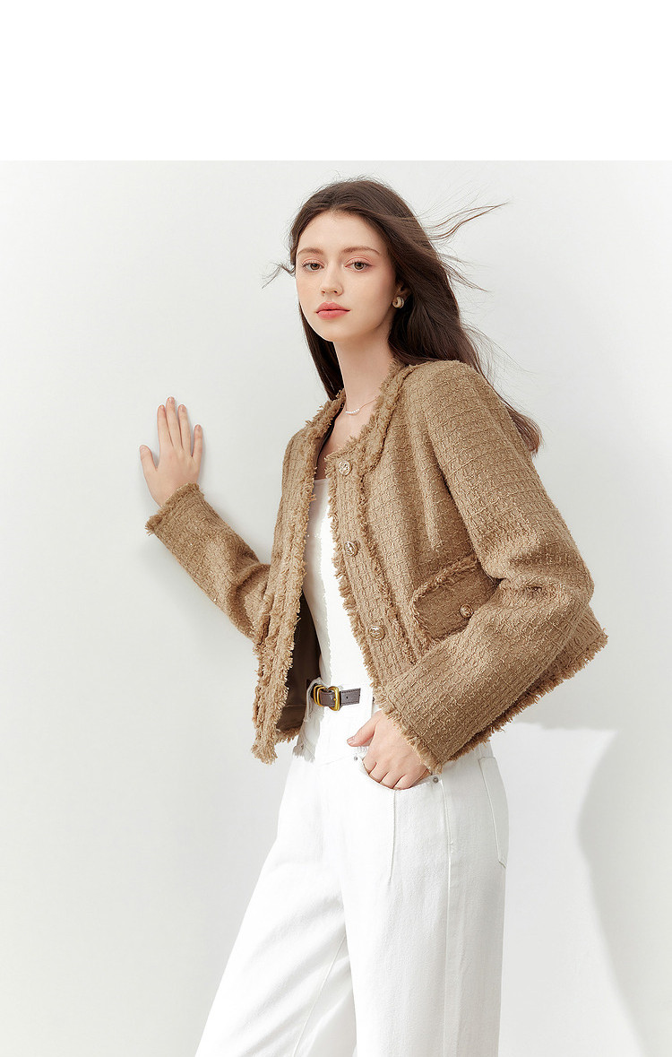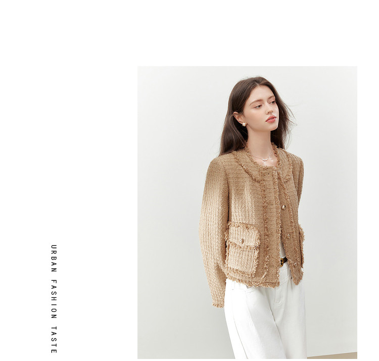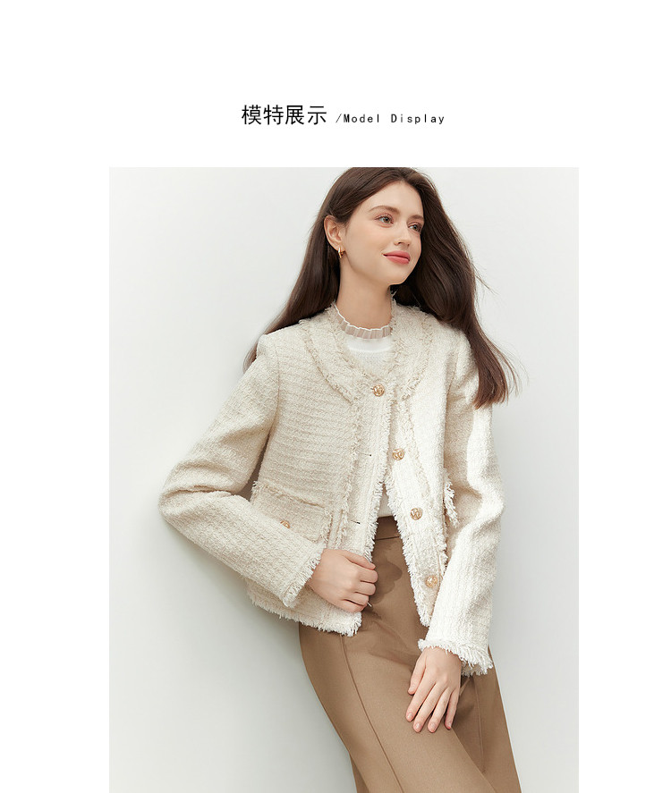 商品名称:【2024秋季】复古千金小香风毛边短外套小个子气质通勤上衣 775636