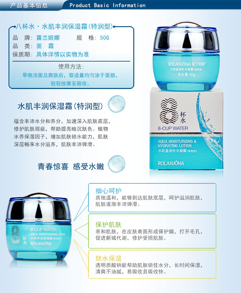 商品名称:露兰姬娜 八杯水水肌丰润保湿霜(特润型)50g