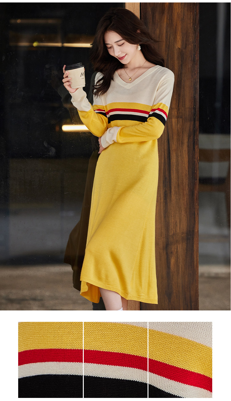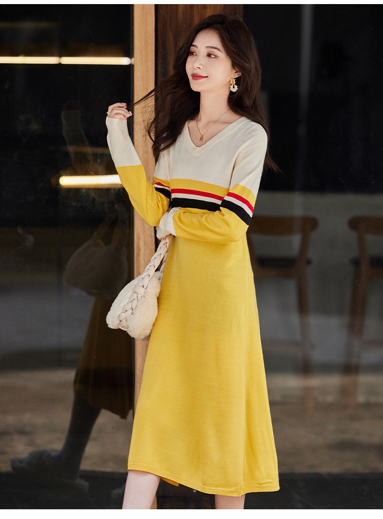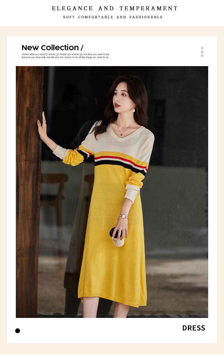 商品名称:时尚百搭春装女装圆点休闲针织气质显瘦保暖长袖连衣裙 408344