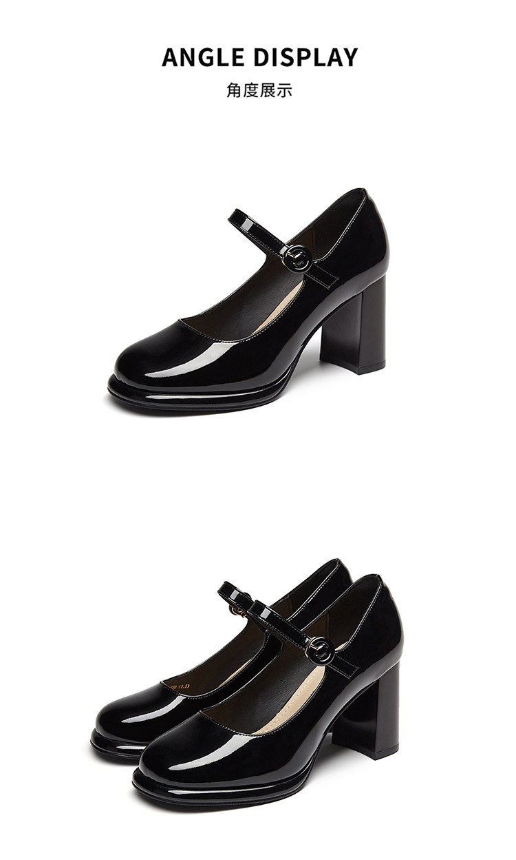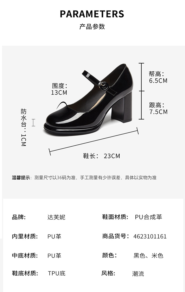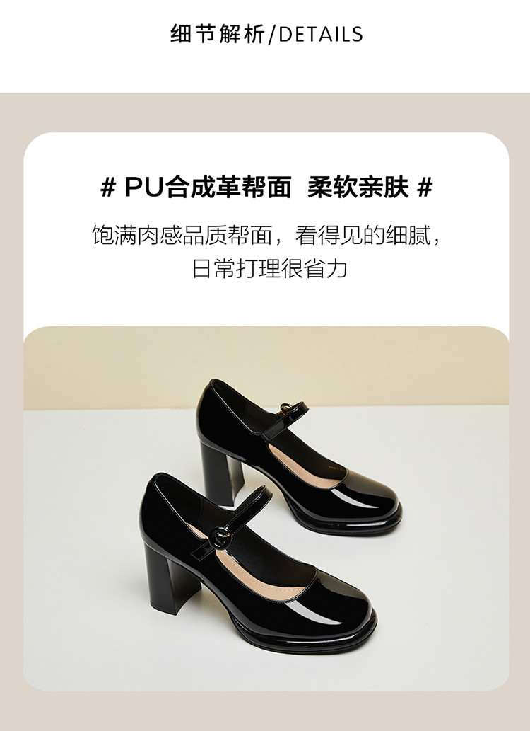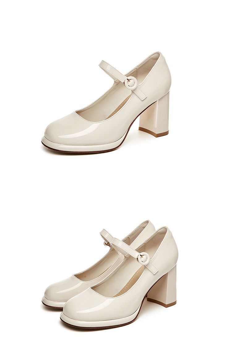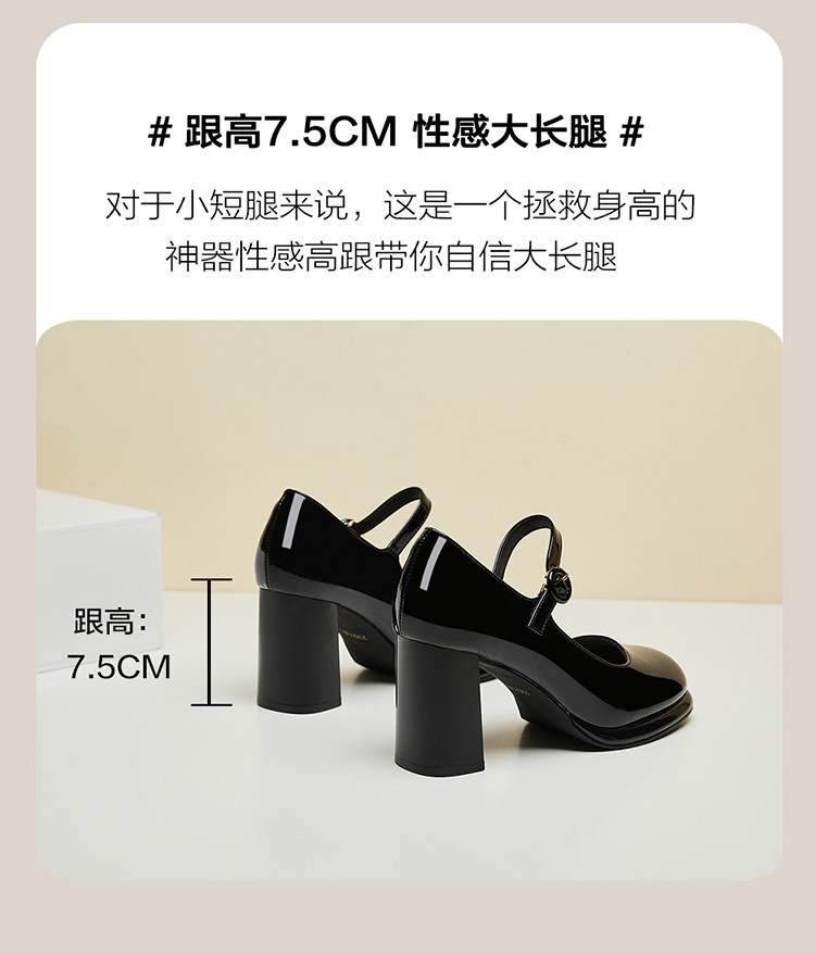 商品名称:【热卖爆款】夏季简约百搭女单鞋妈妈鞋一字扣圆头粗跟高跟鞋女鞋 365655