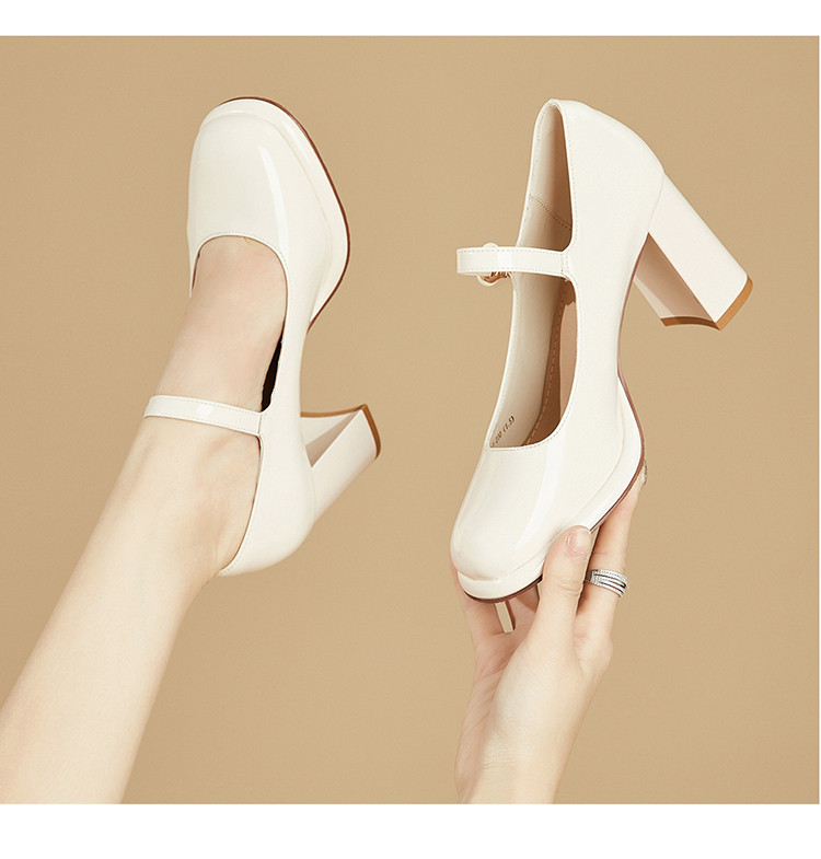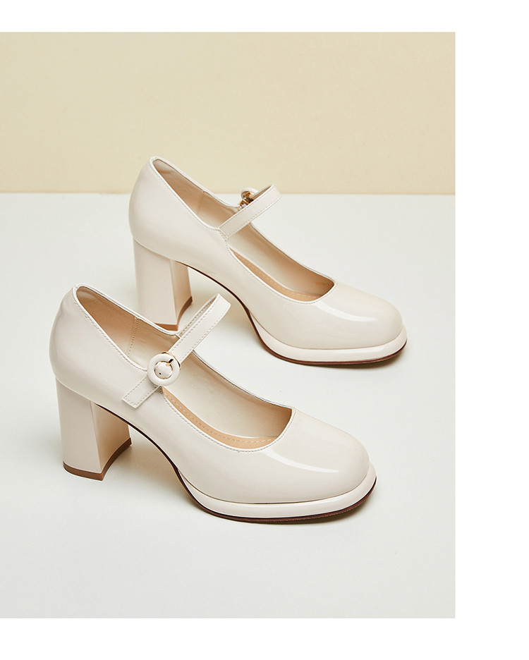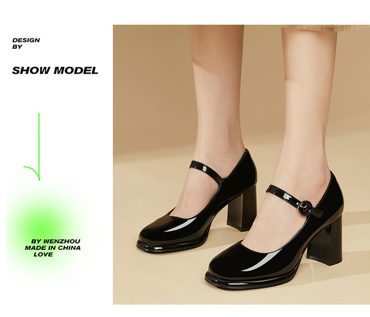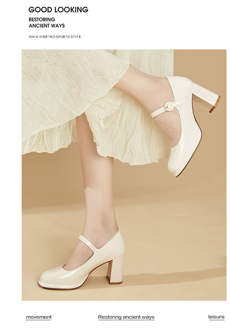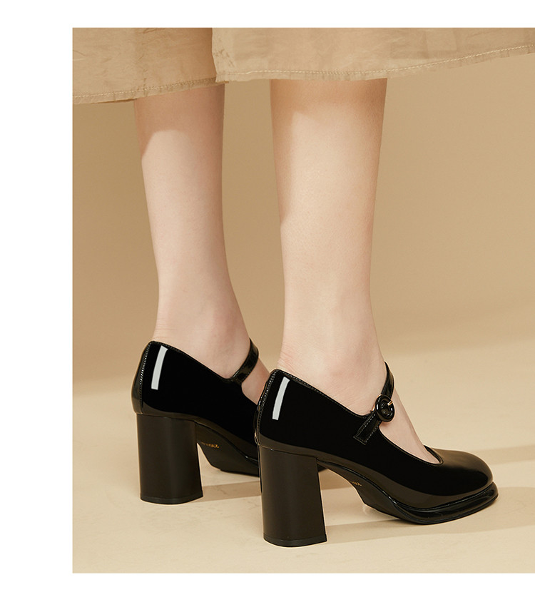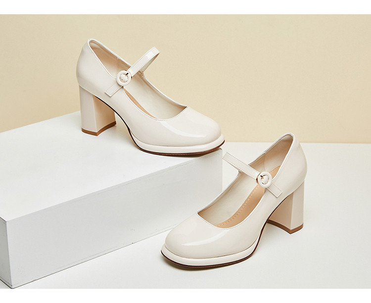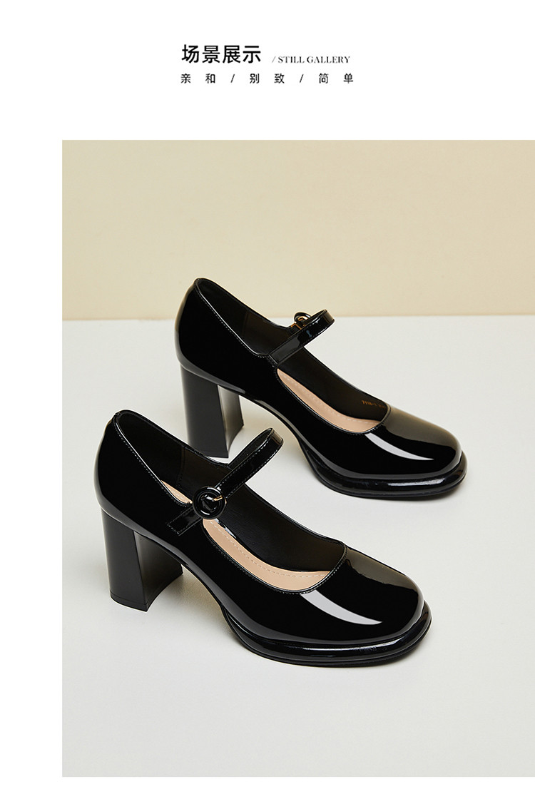 商品名称:【热卖爆款】夏季简约百搭女单鞋妈妈鞋一字扣圆头粗跟高跟鞋女鞋 365655