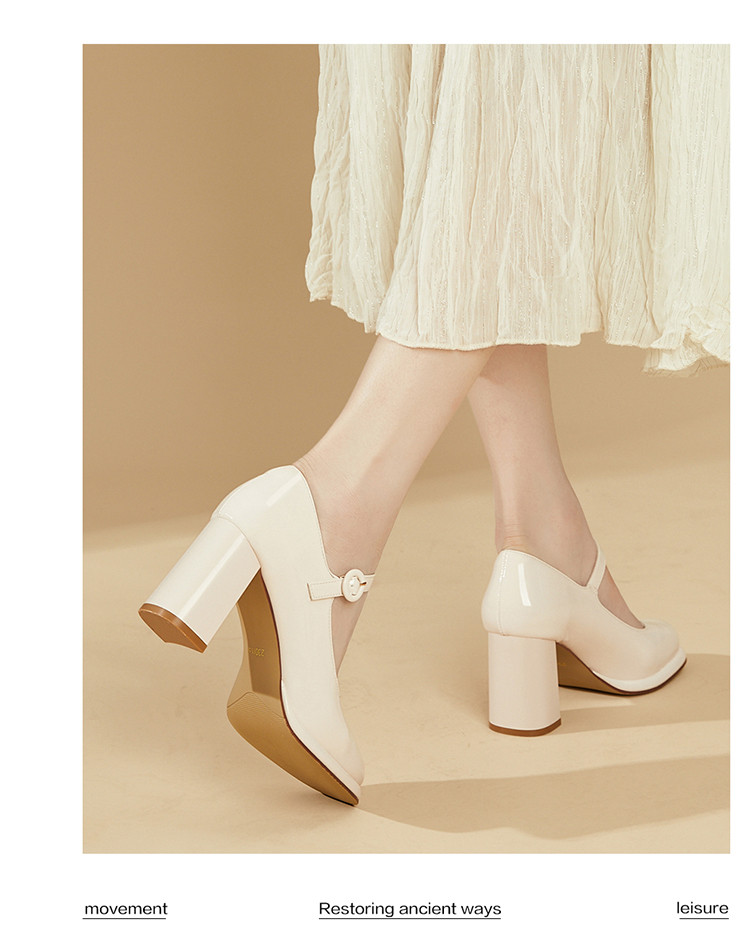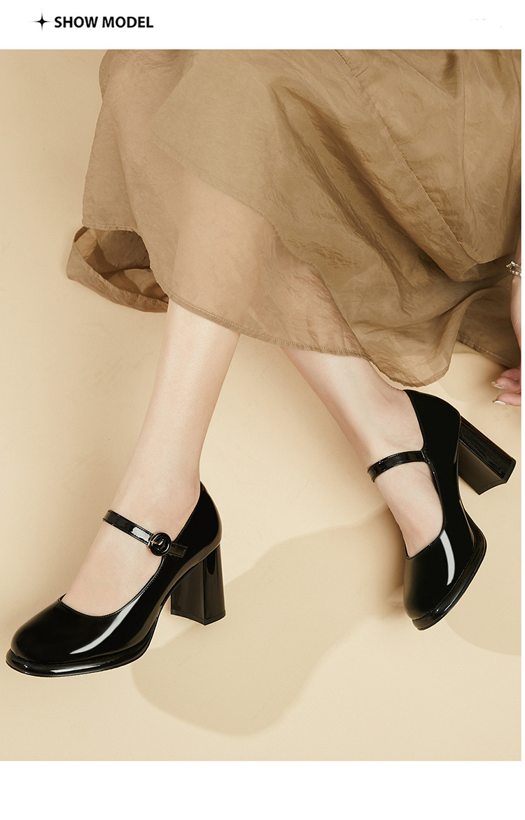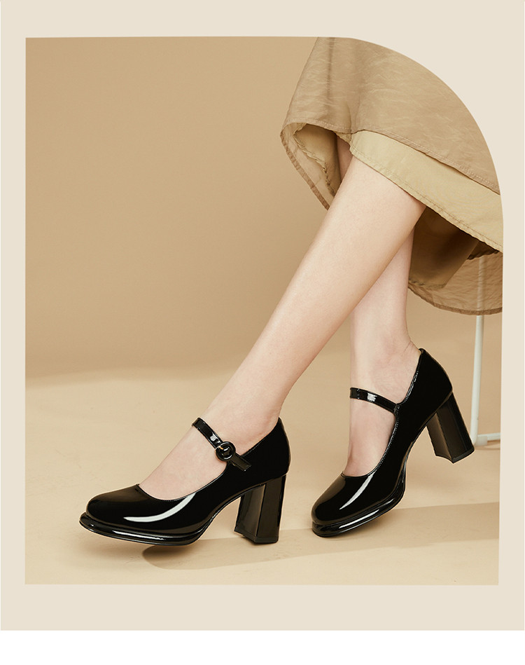 【热卖爆款】夏季简约百搭女单鞋妈妈鞋一字扣圆头粗跟高跟鞋女鞋 365655